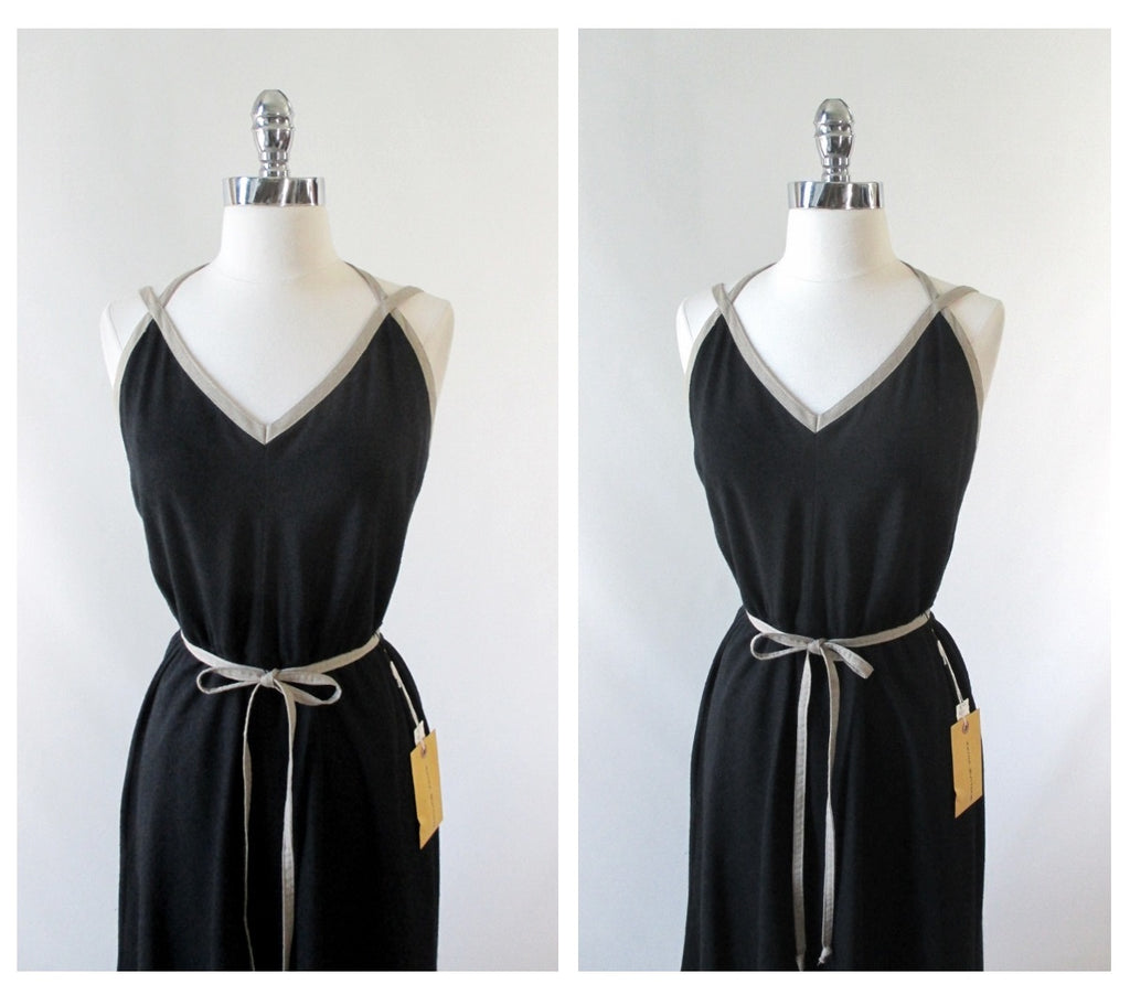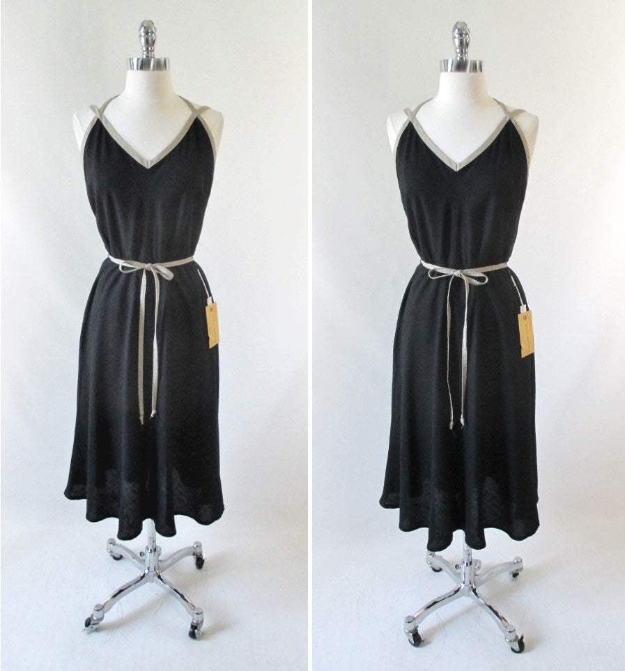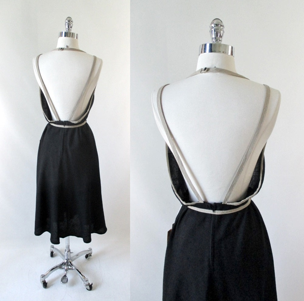 Vintage 70's Black & Tan Backless Dress New / Old Stock M