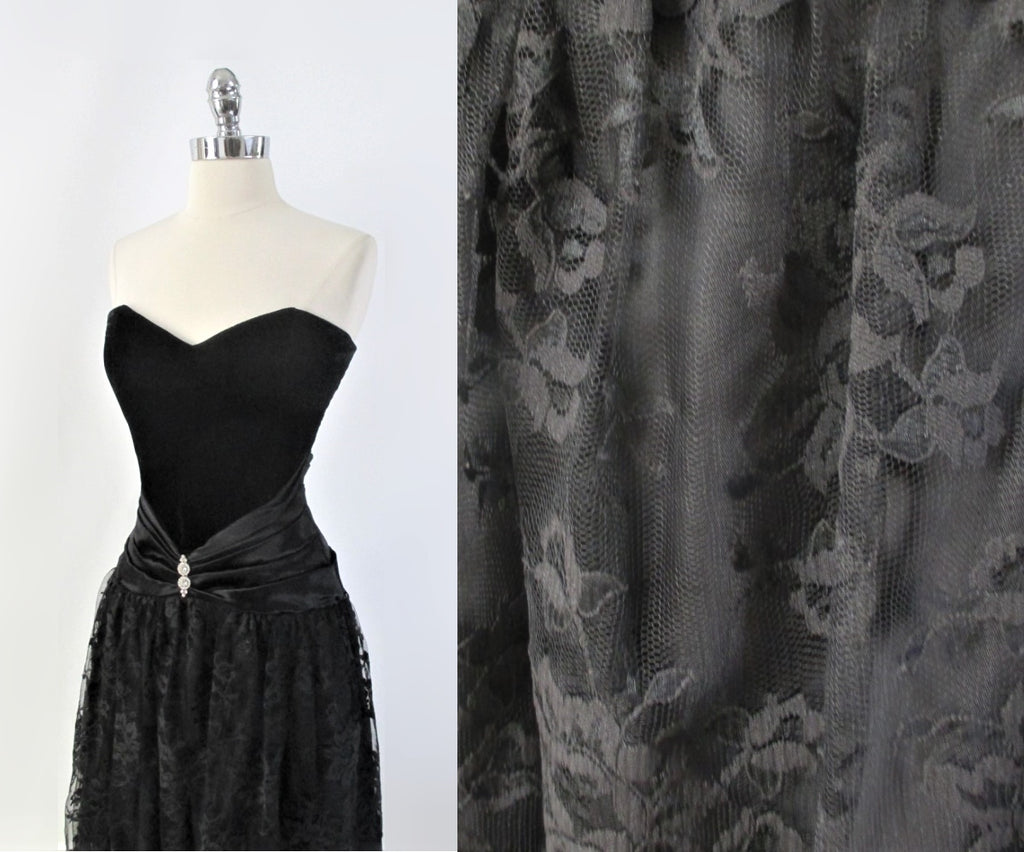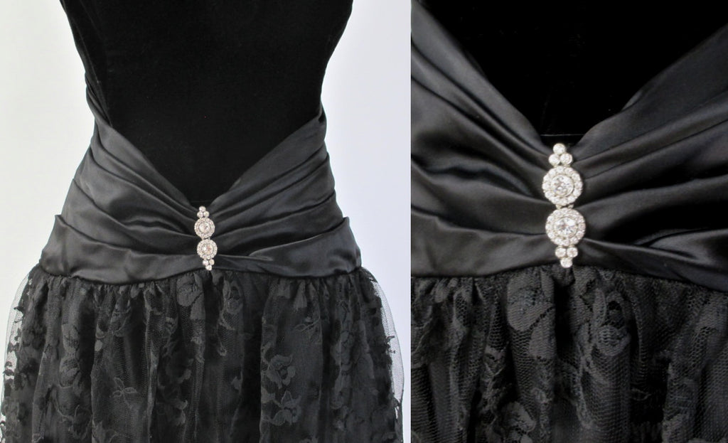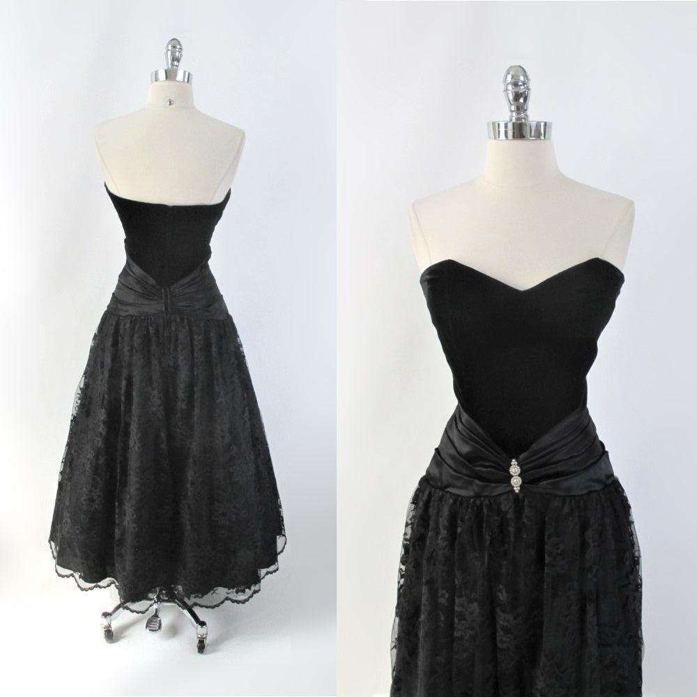 Vintage 80s Scott Mc Clintock Strapless Black Party Dress S