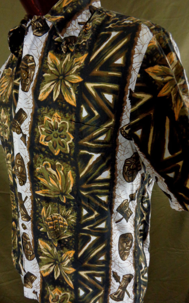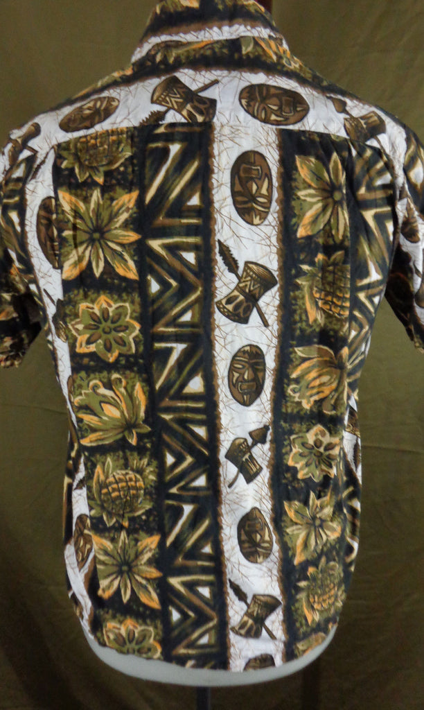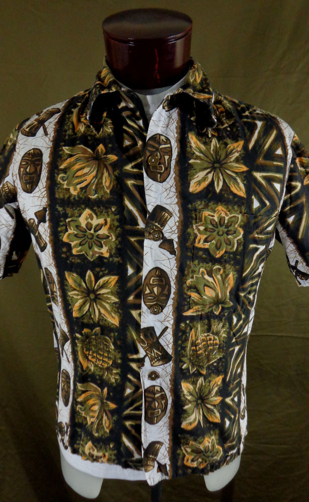 Vintage 60s Ui-Maikai Tribal Tiki Print Hawaiian Aloha Shirt