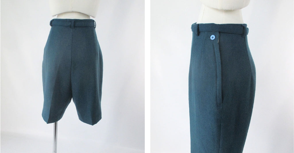 Vintage 50s 60s Teal Wool Bermuda Shorts & Matching Belt M