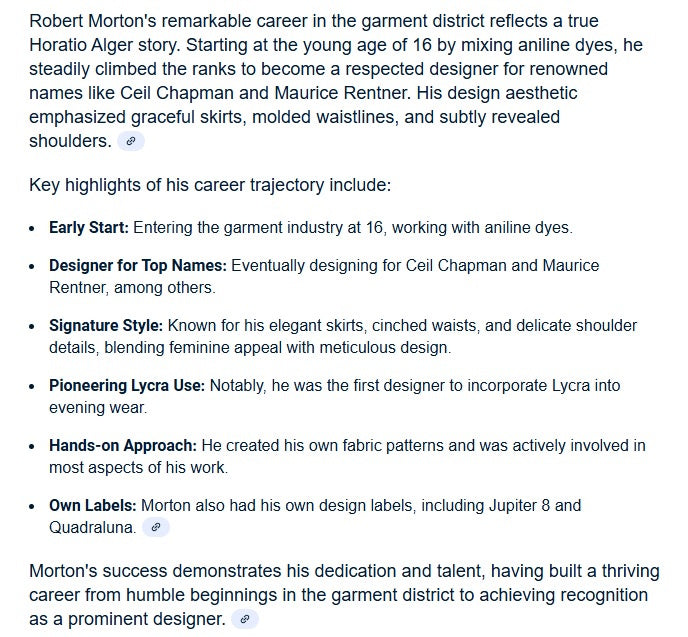 Morton designed for Ceil Chapman and Maurice Rentner.
