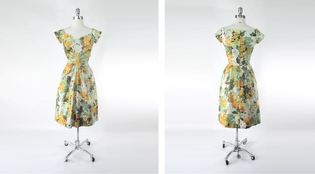 Vintage 50s Robert Morton Floral Sequins Party Dress S