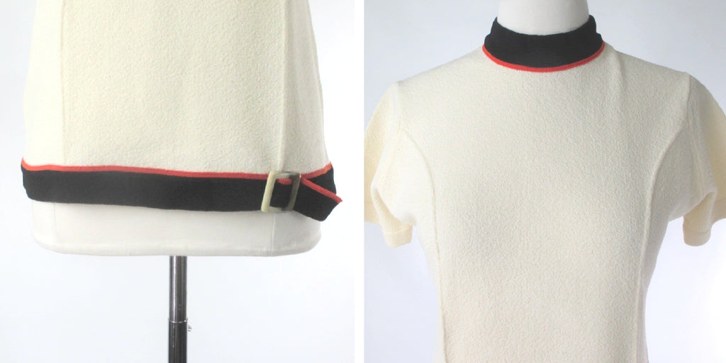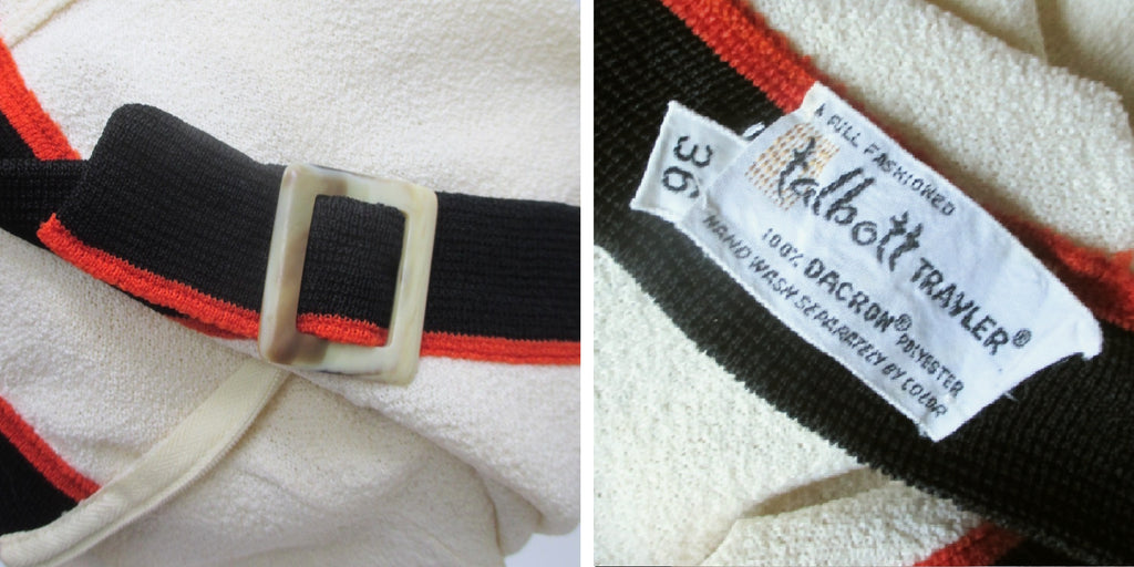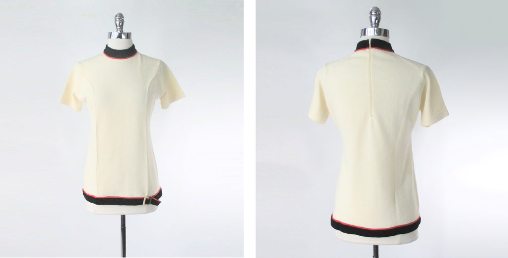 Vintage 60s Orange Black Stripe Belted Buckle Top M