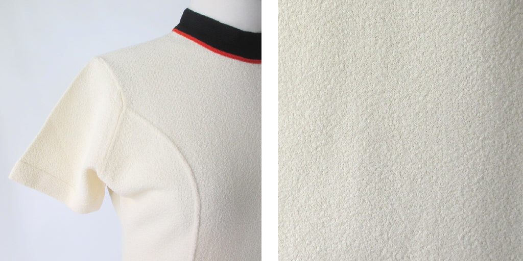 On very close inspection, noted for accuracy: A light peach hue at the nape of the zipper tape.
