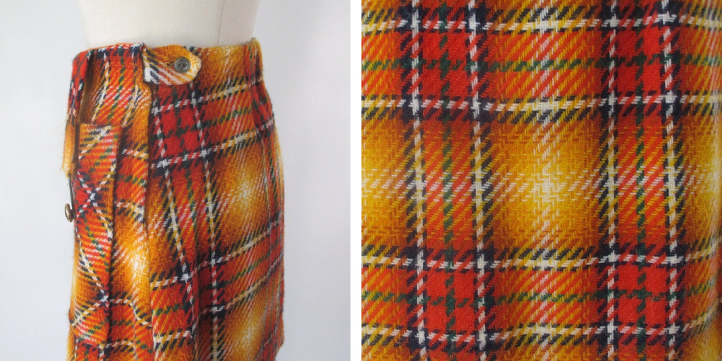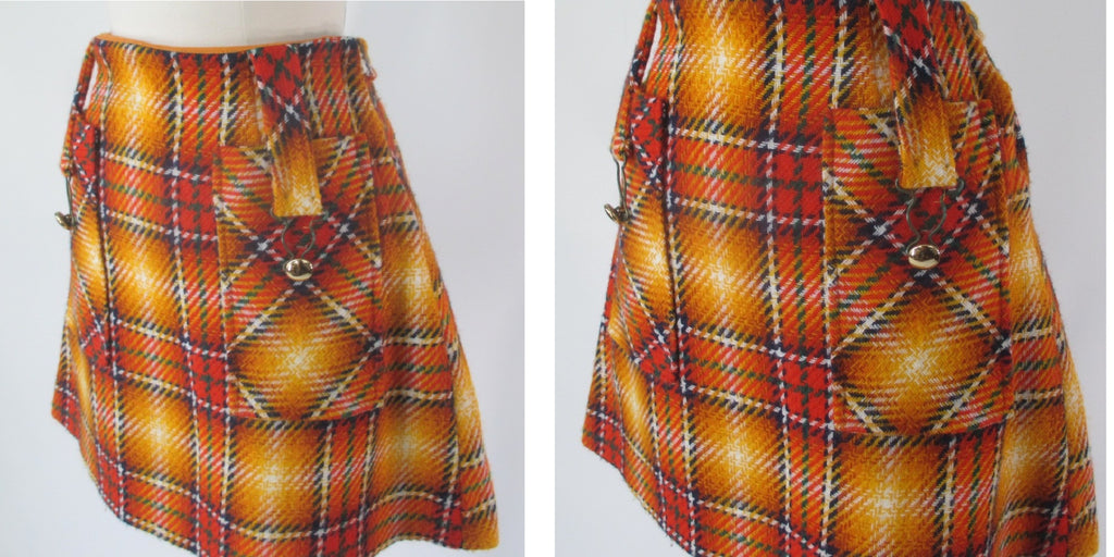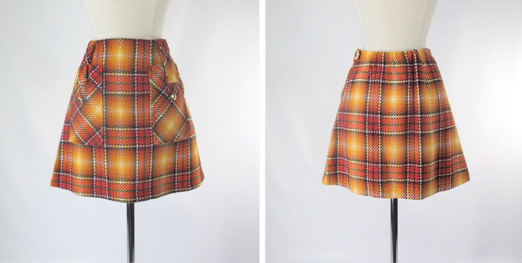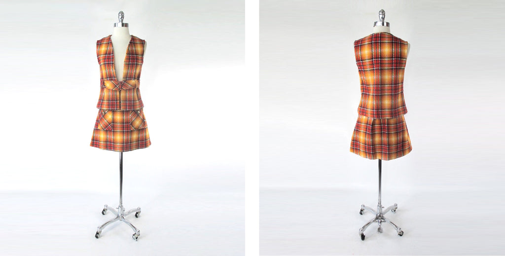 Vintage 60s Orange Plaid Vest & Mini Skirt Co-ord Set S