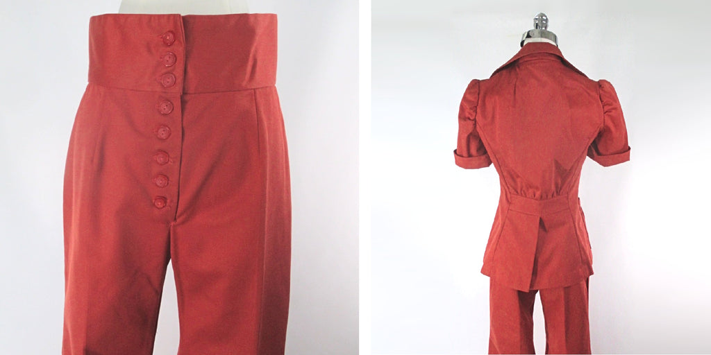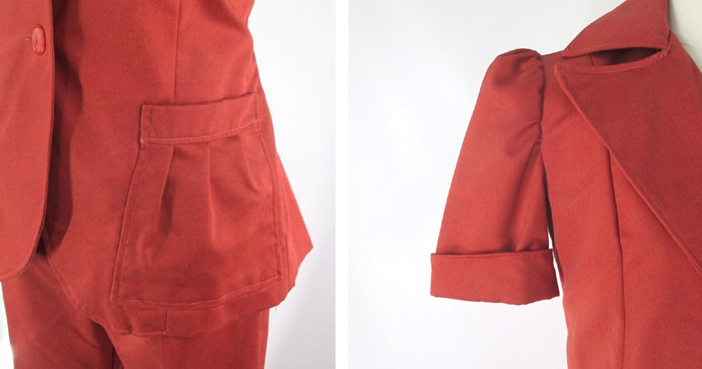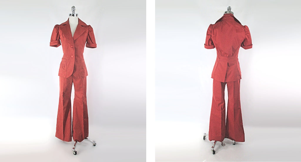 Vintage 70s Burnt Orange Bell Bottom Pants & Top Set S