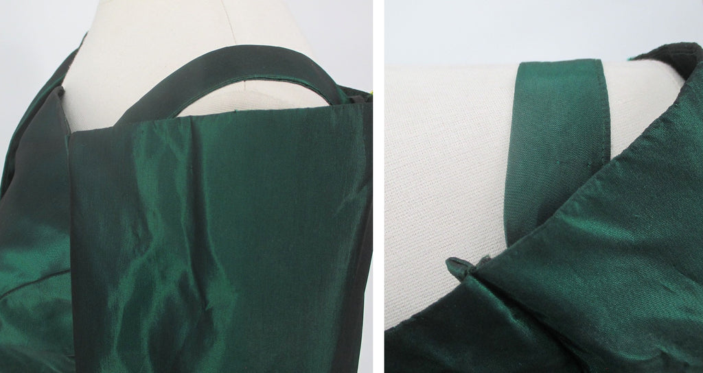 Vintage 80s 90s Emerald Green Sharkskin Taffeta Party Dress M
