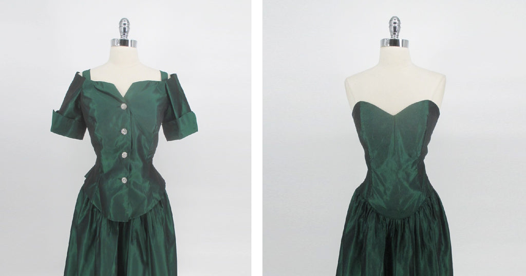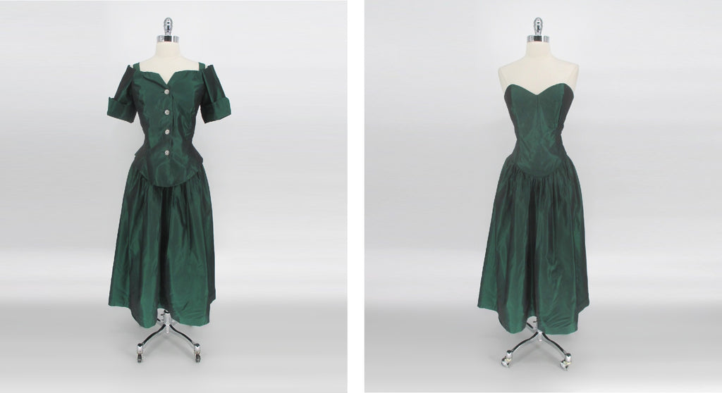 Dark green taffeta matching set.