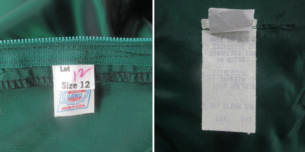 Basque waist and full, tea length skirting with rear zipper.
