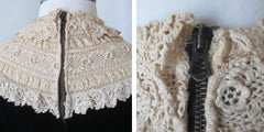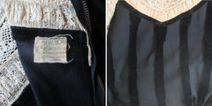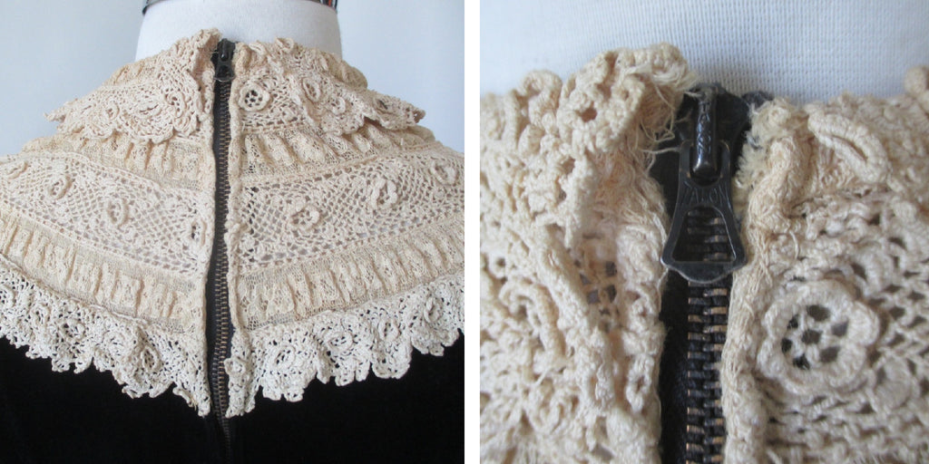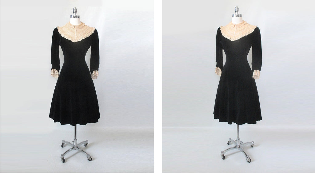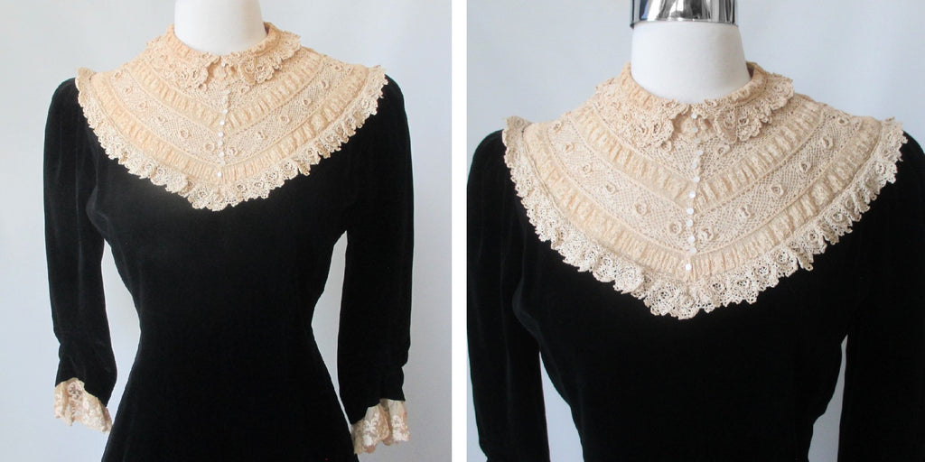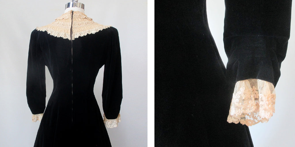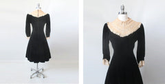 Vintage 40's 50s Black Velvet & Crochet Lace Dress M