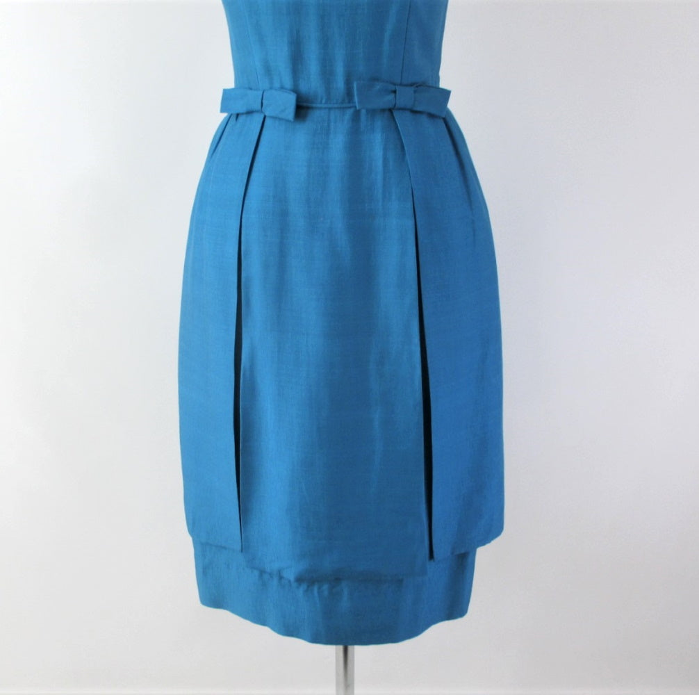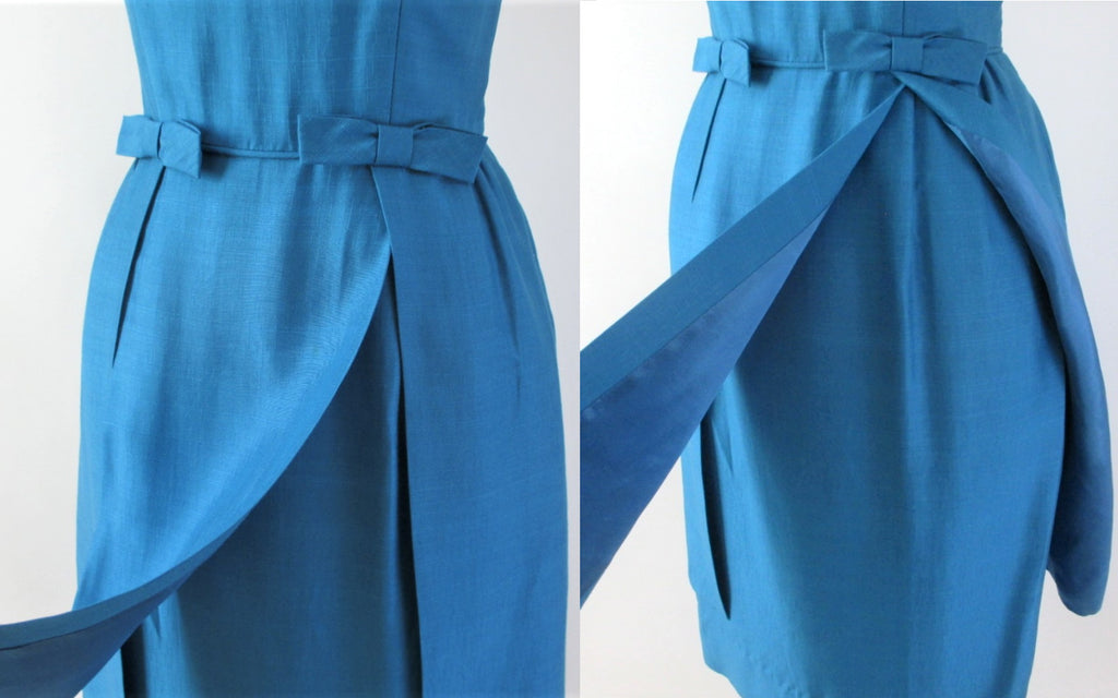 Vintage 60s Blue Dual Split Skirt Party Dress S