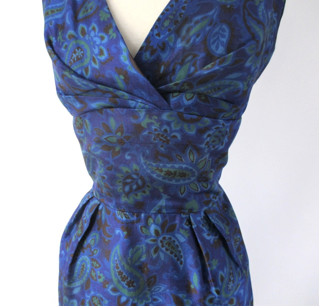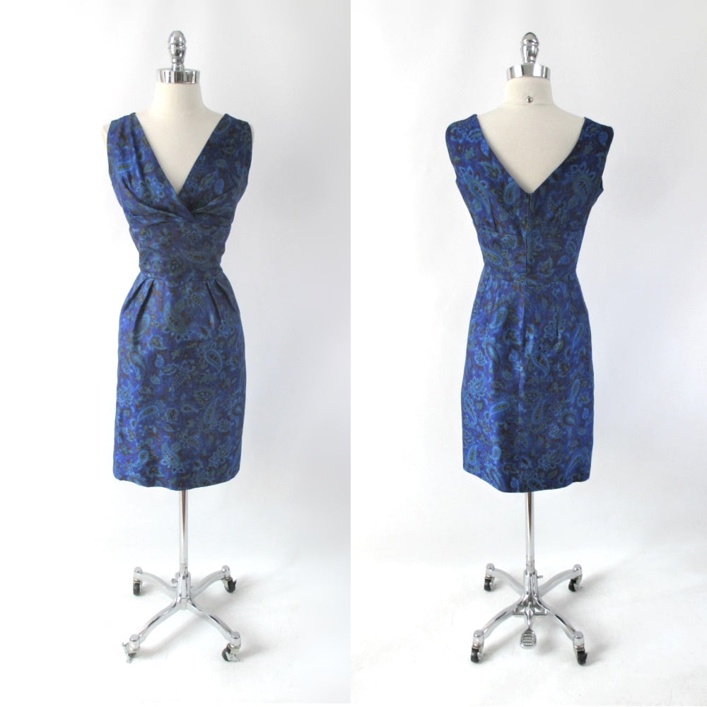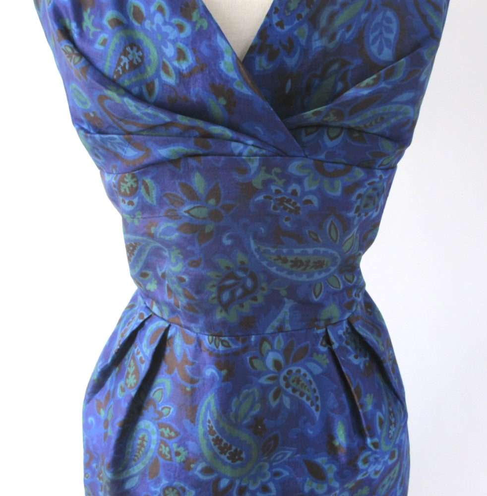 Vintage 50s Blue Paisley Sheath Dress L