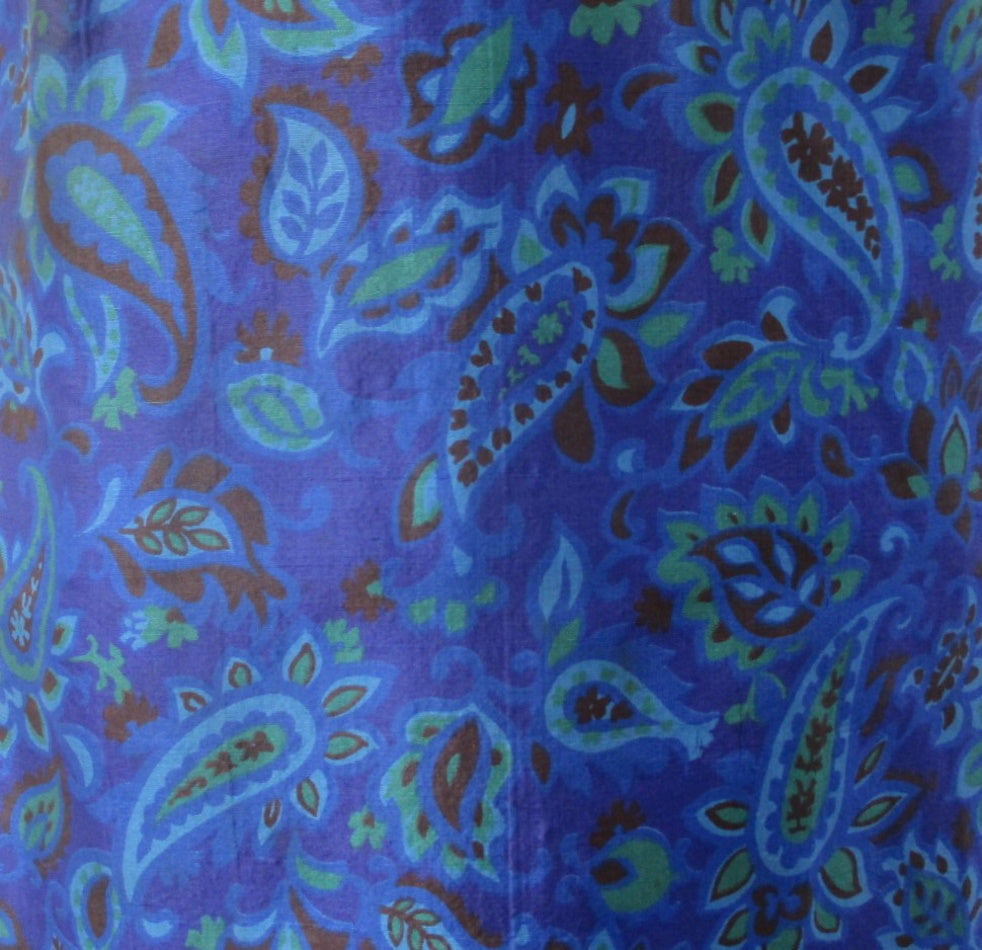 Deep blue with jewel toned, paisley print.