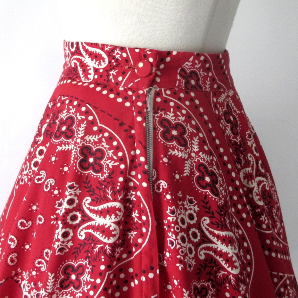 Vintage 50s Red Bandana Full Circle Skirt S