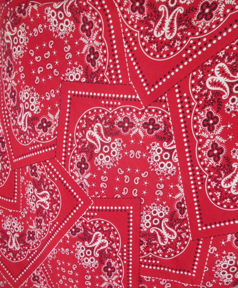 Classic red bandana print with white and black highlights.