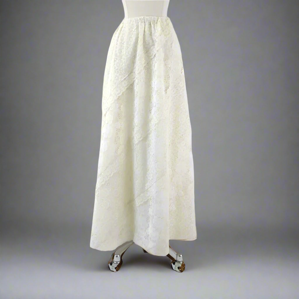 Vintage 70's Antique White Lace Bohemian Maxi Skirt • One size