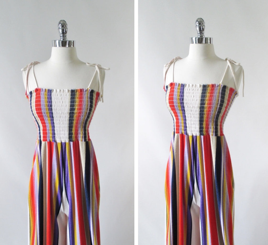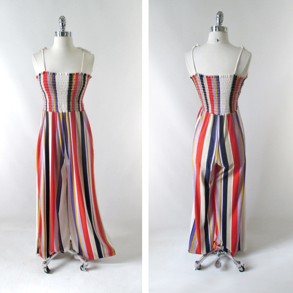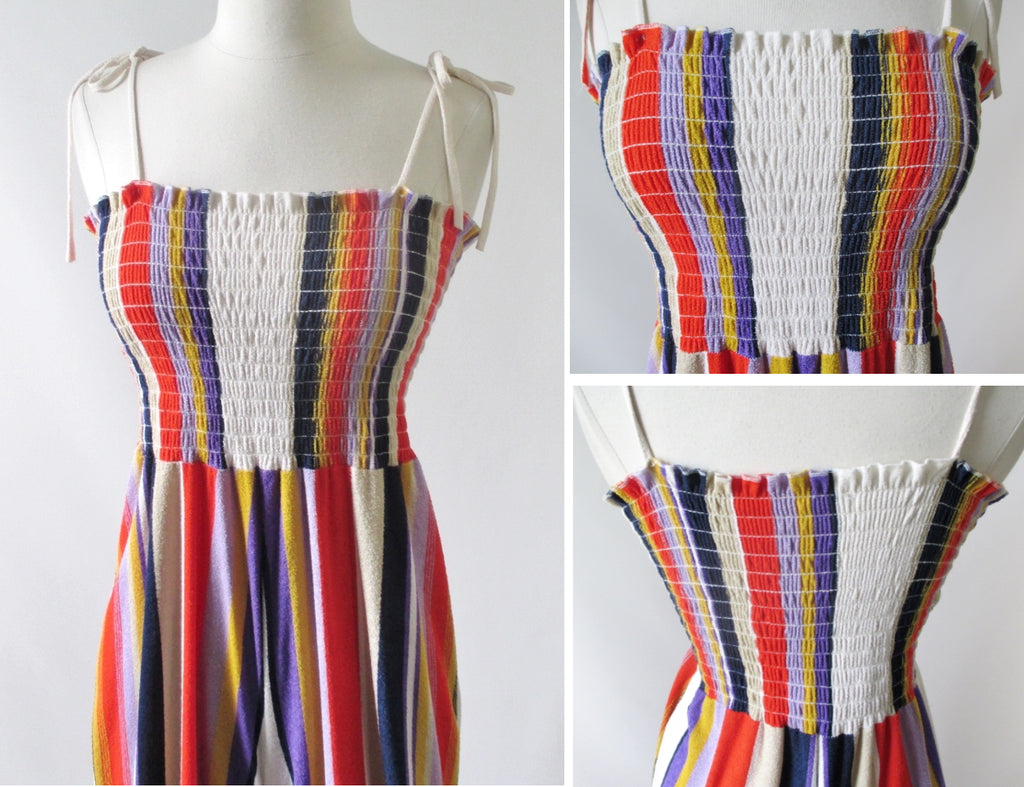 Vintage 70s Striped Terry Cloth Jumpsuit M