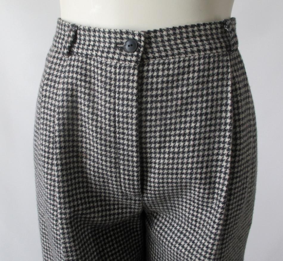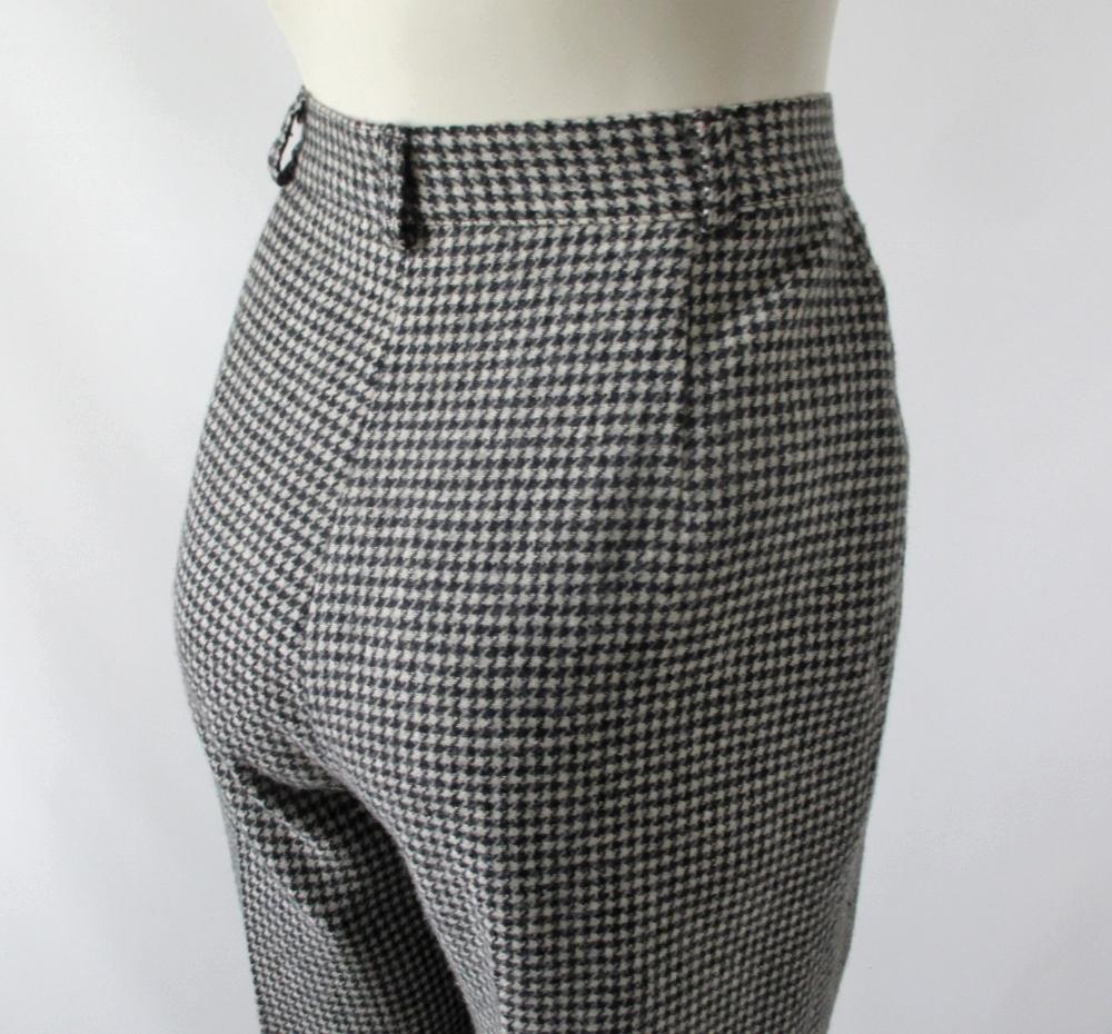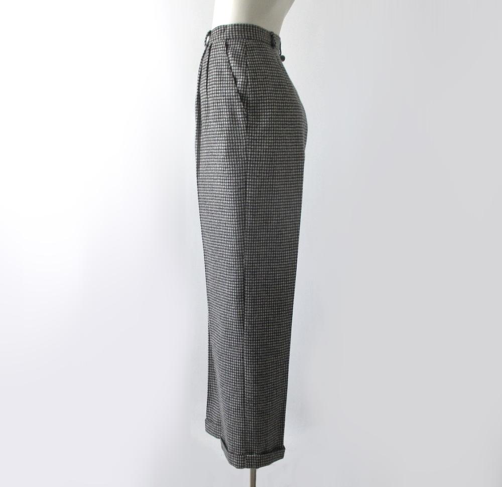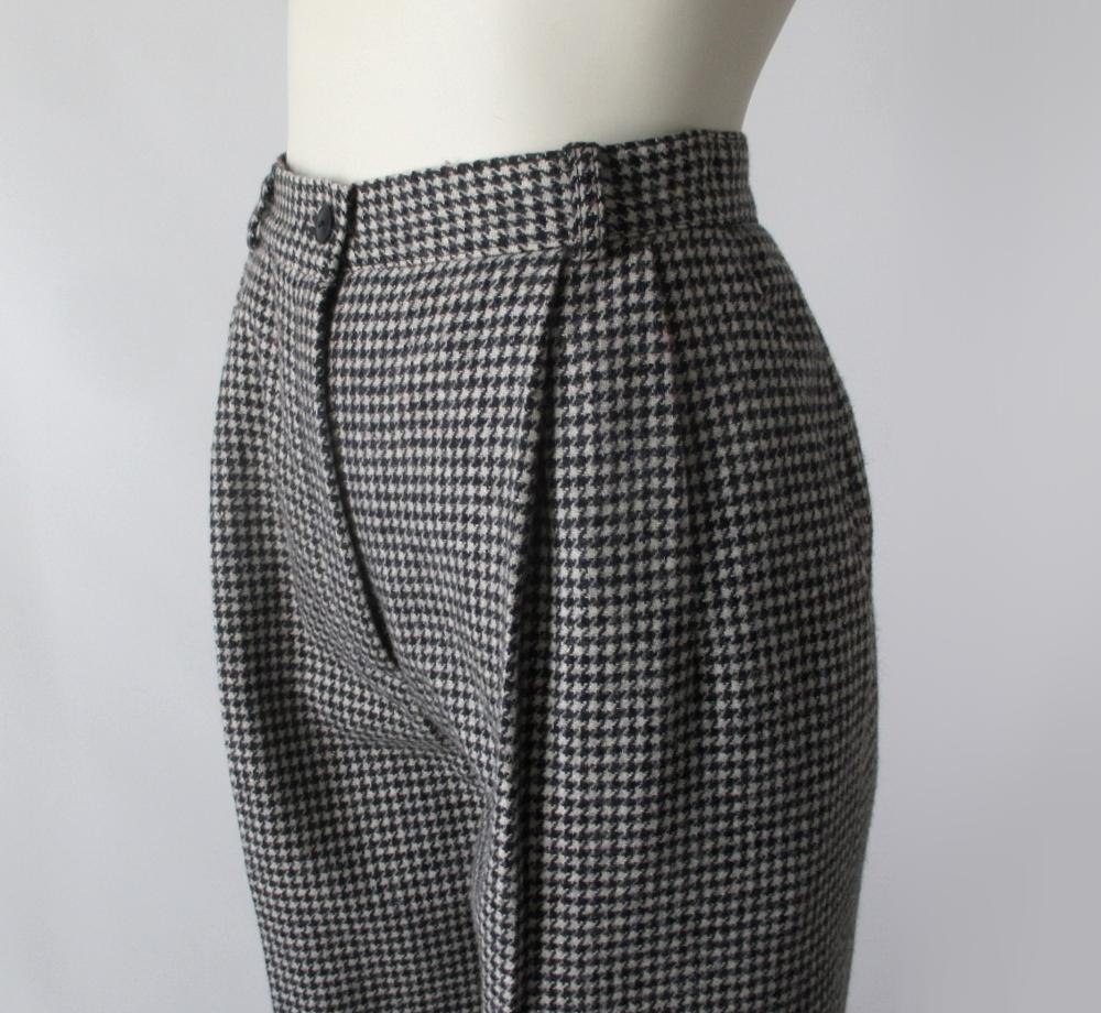 Vintage 80s Black White Herringbone Cuffed Pants / Trousers M