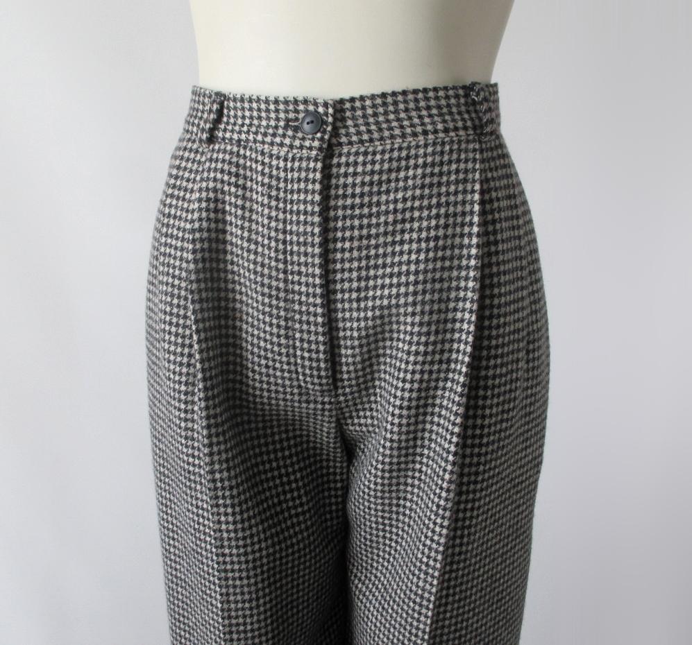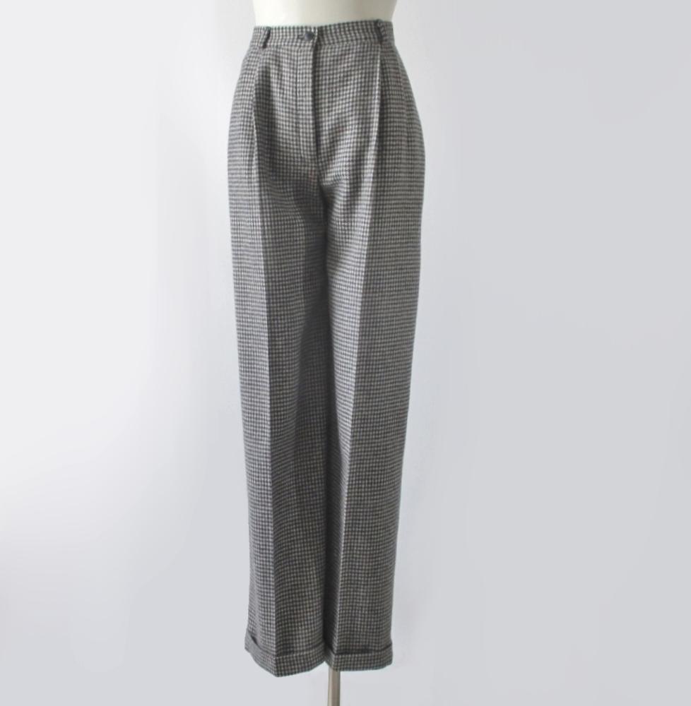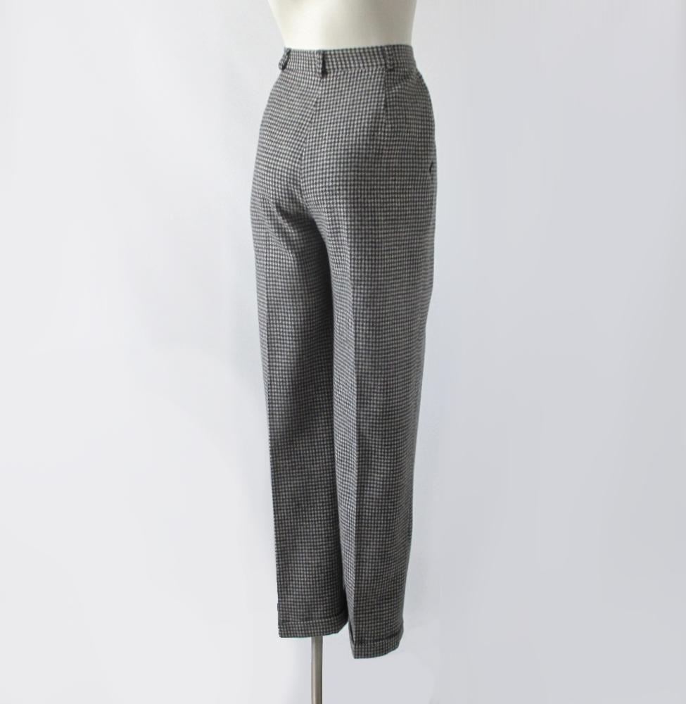 Vintage 80s Black White Herringbone Cuffed Pants / Trousers M