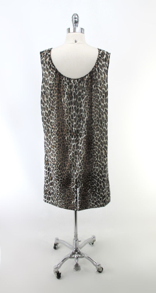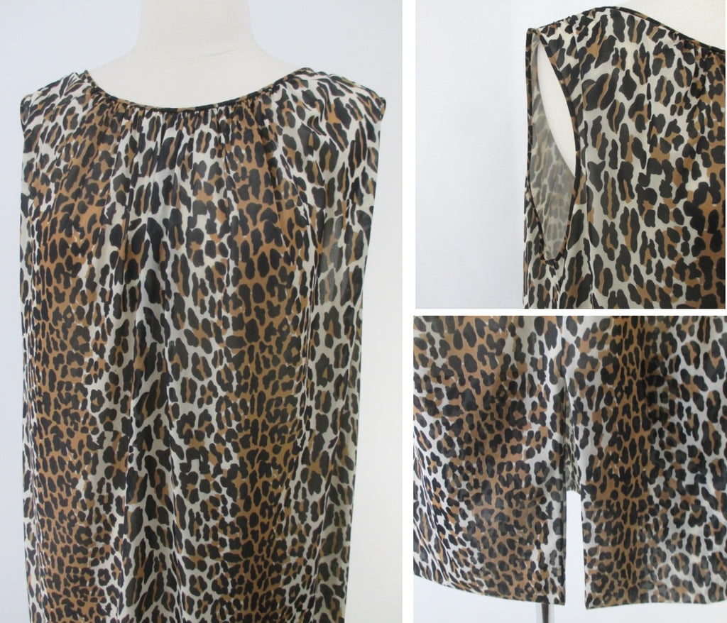 Slightly gathered neck with loose fitting A-line / shift cut.