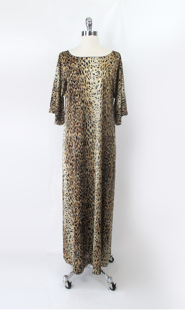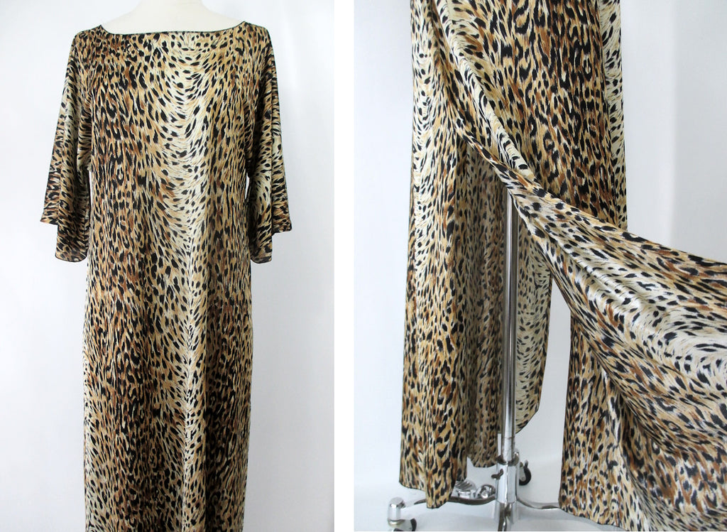 Vintage 70s Claire Sandra Lucie Ann Leopard Night Gown L