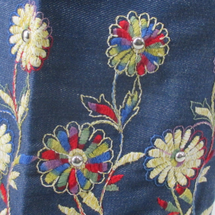 Vintage 70s Embroidered Rainbow Flower Bell Bottom Jeans S