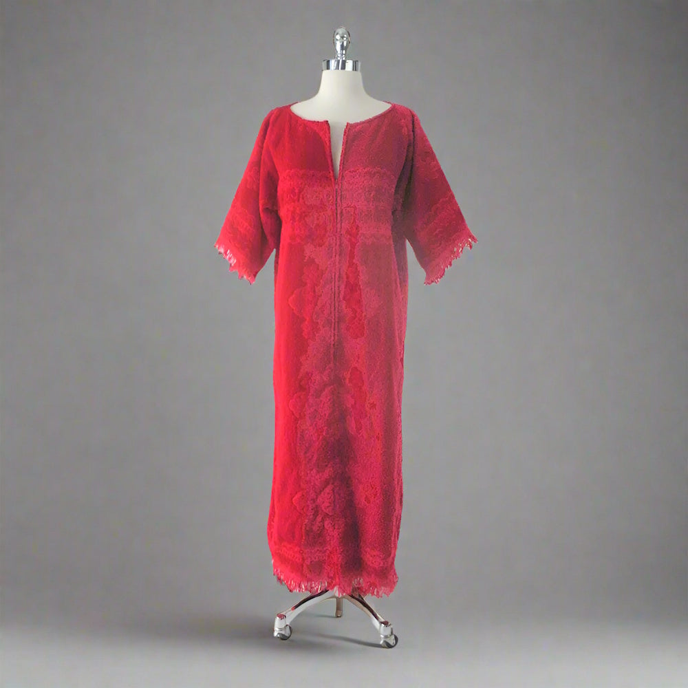 Vintage 60s Red Towel Robe Cover Up Dress M