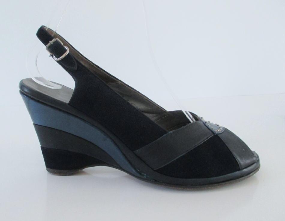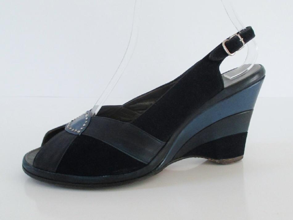 Vintage 50s 40s Navy Blue Ombre Suede Slingback Wedge Heels 7
