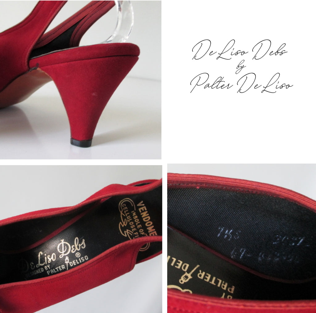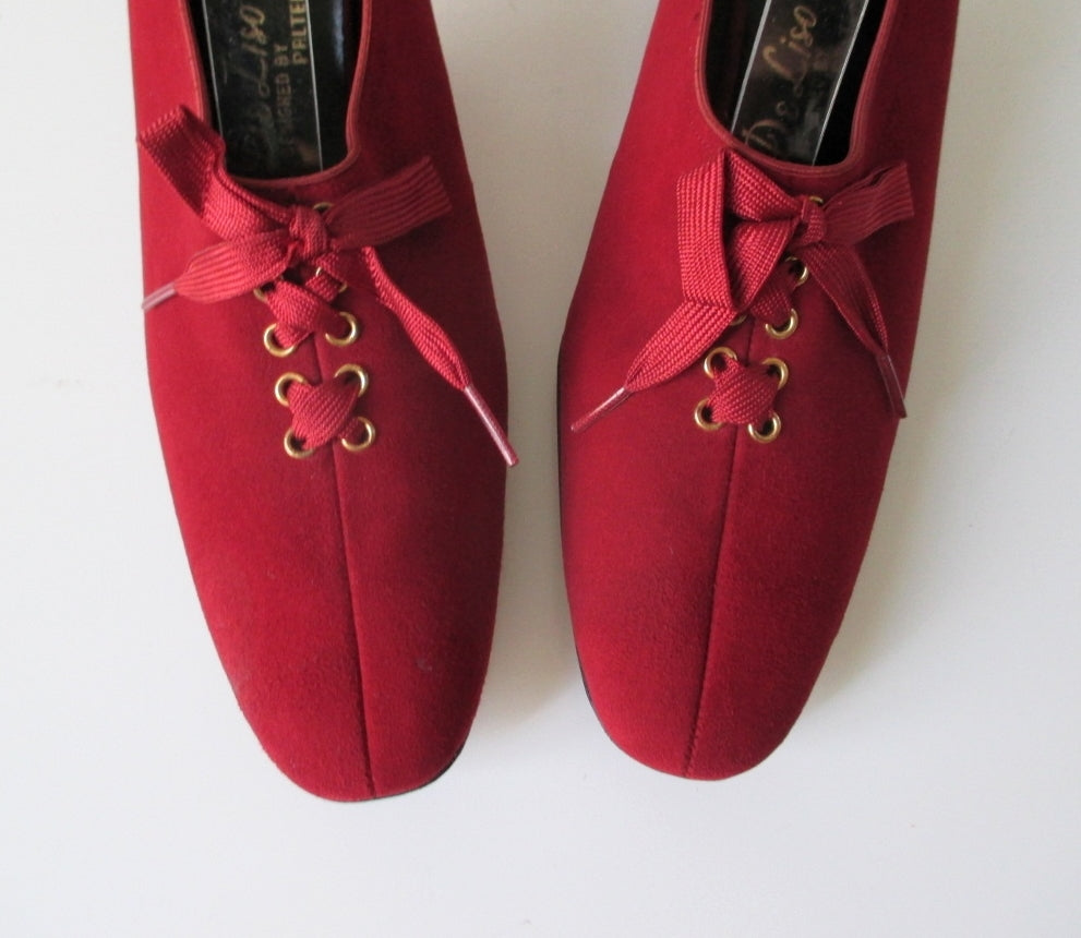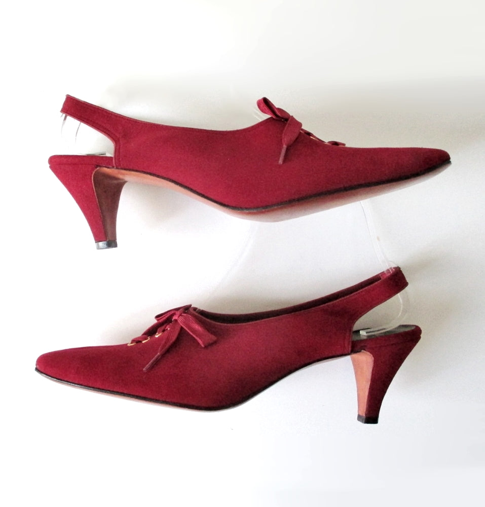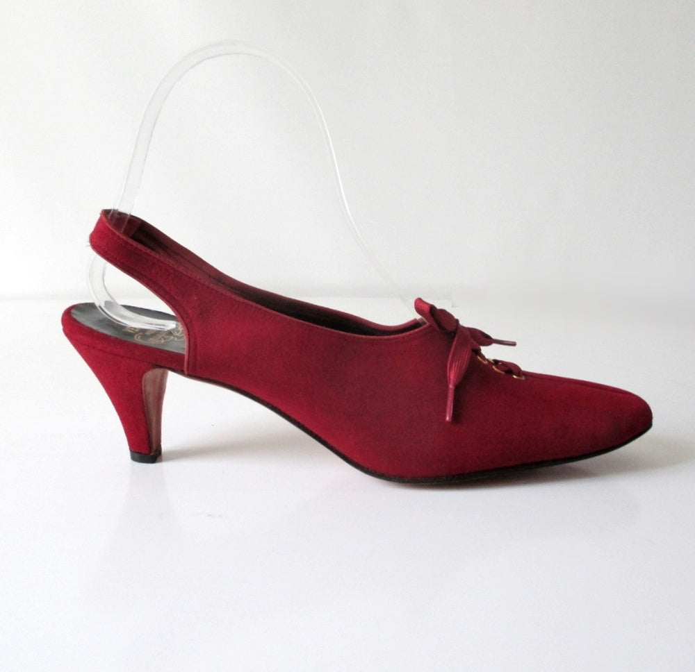 Vintage 60's Deep Red Lace Up Slingback Heels 7.5