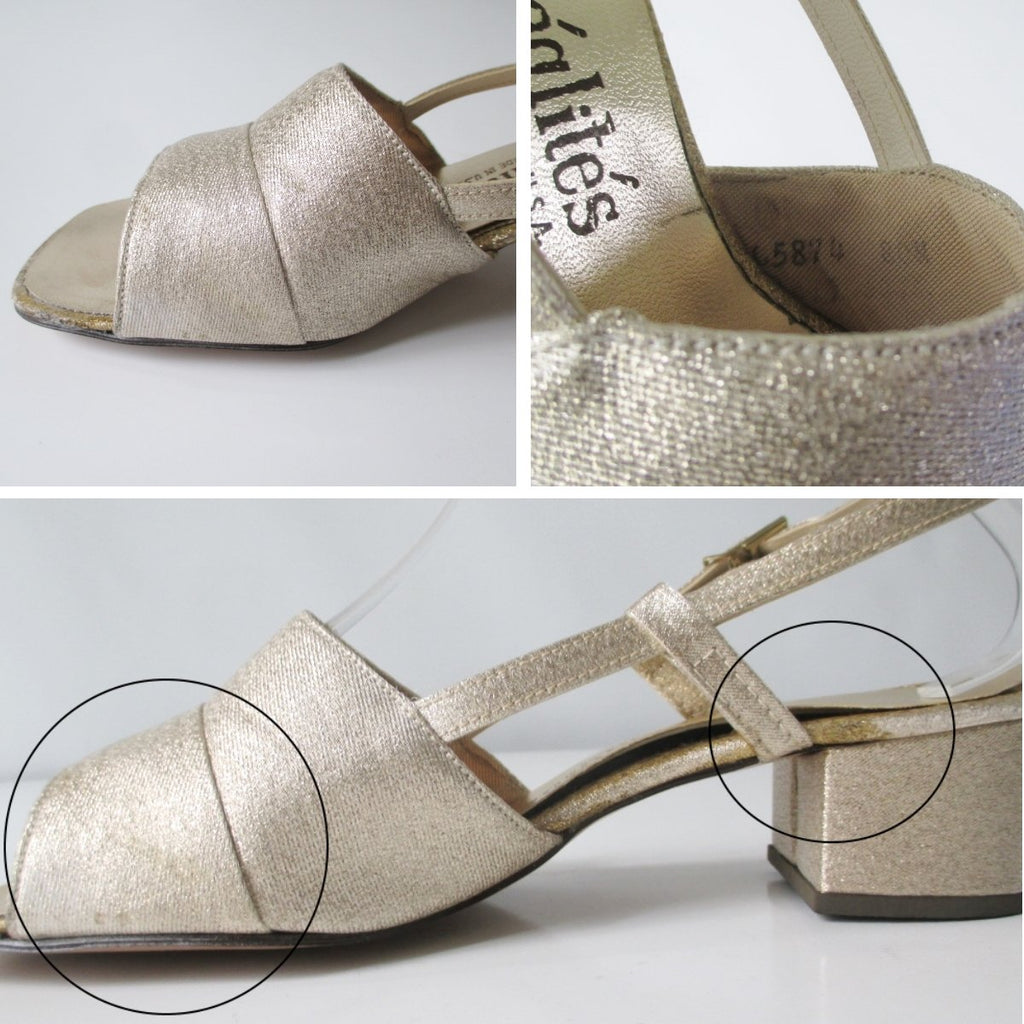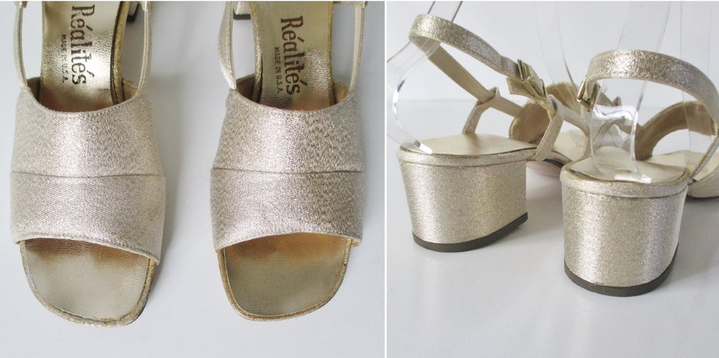 Vintage 60s Gold Lamé Wide Heel Party Shoes 8
