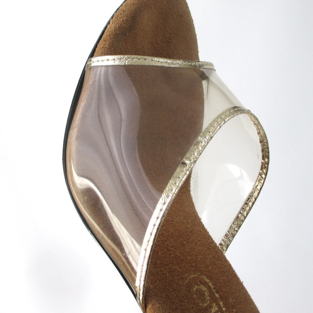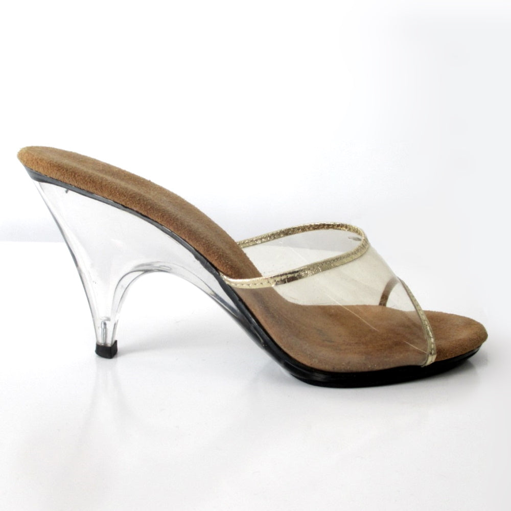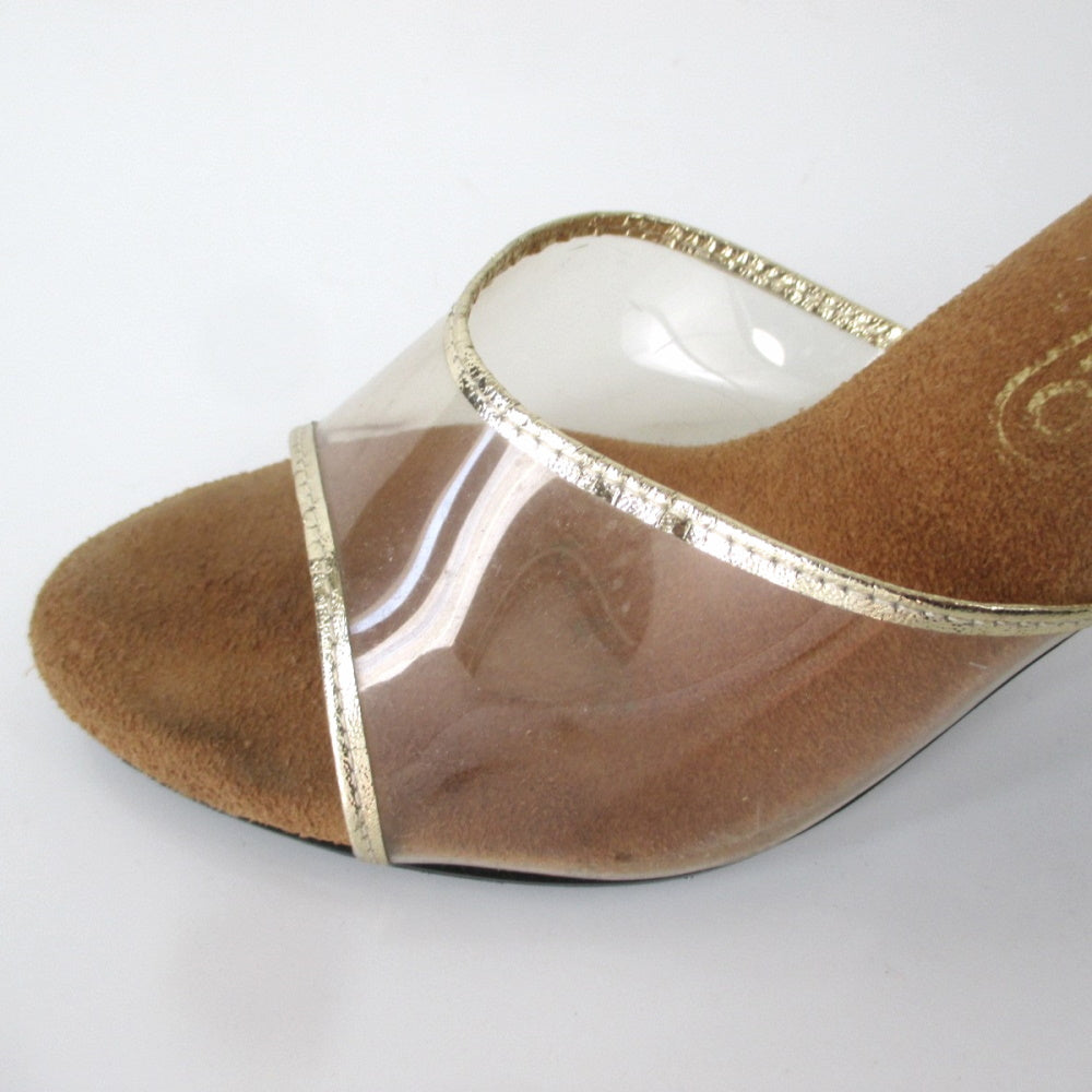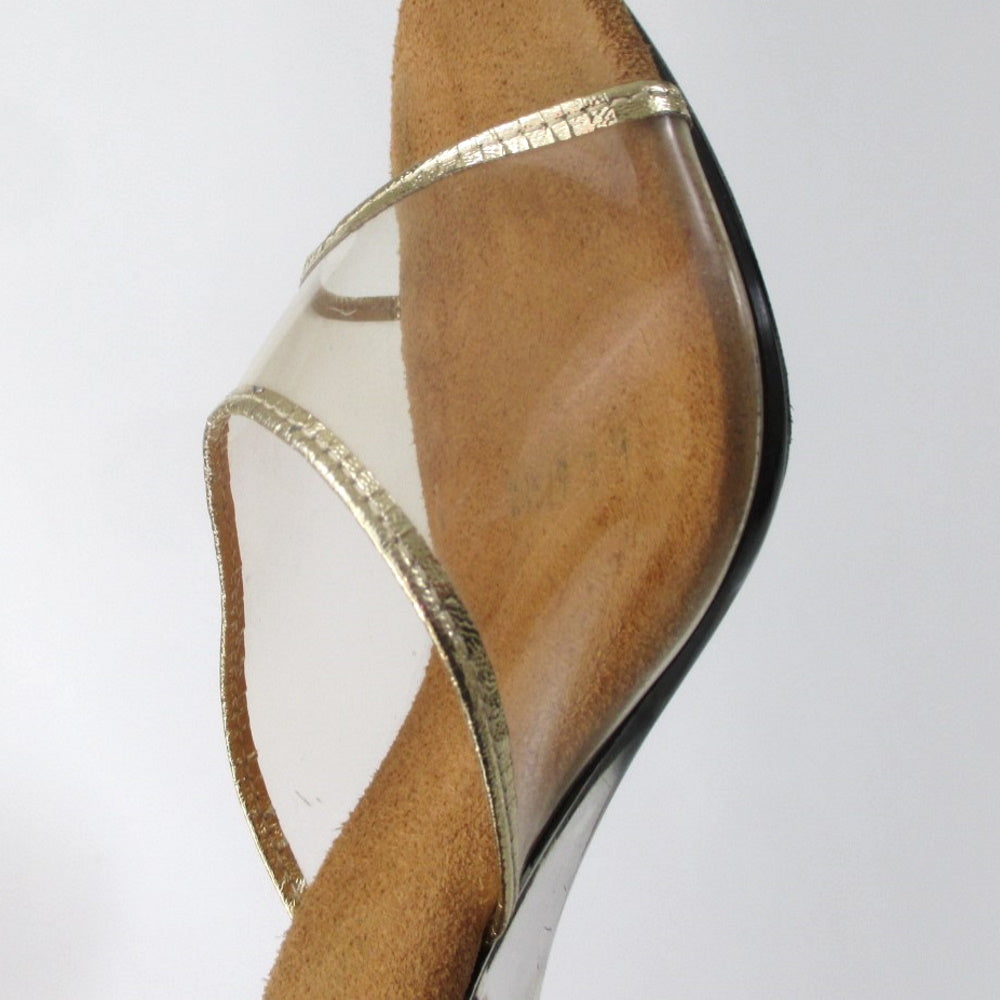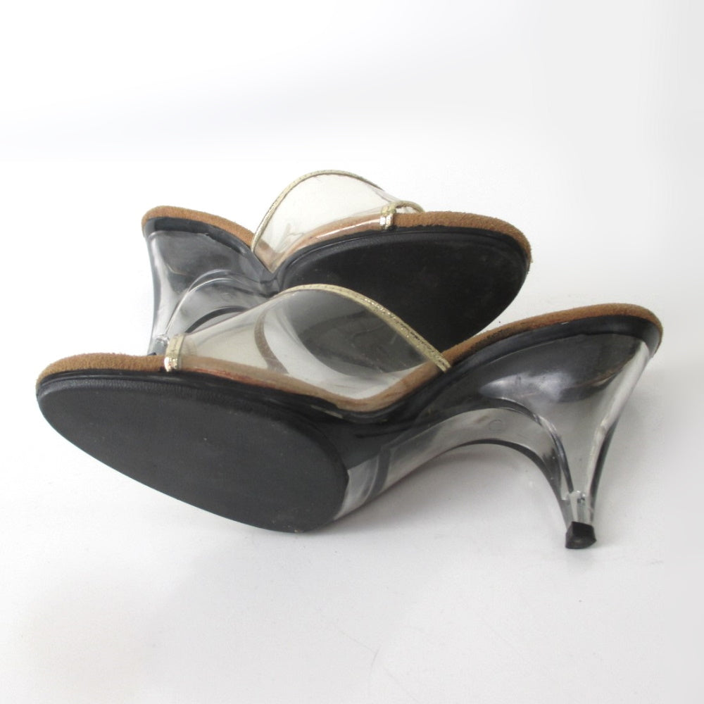 Vintage 70s Clear Lucite Gold Trim Heels Shoes 7