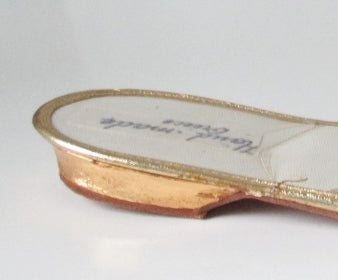 Gold is flaking off the fabric covered heels - Left shoe (most on the right side of heel) has more loss than the right shoe.