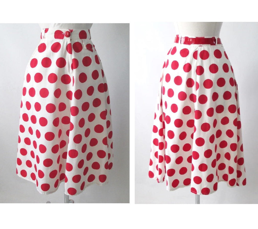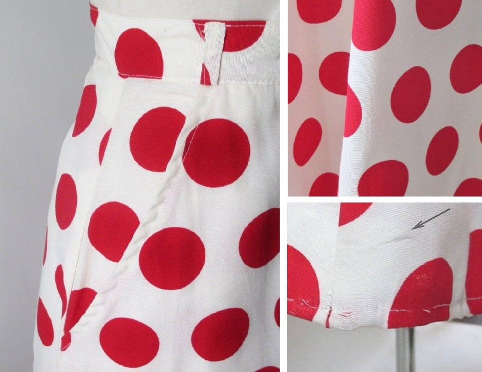 Vintage 70's 40's White Red Polka Dot A Line Swing Skirt S