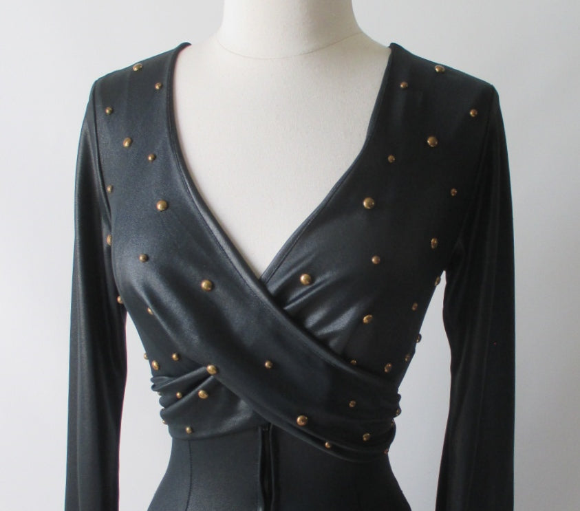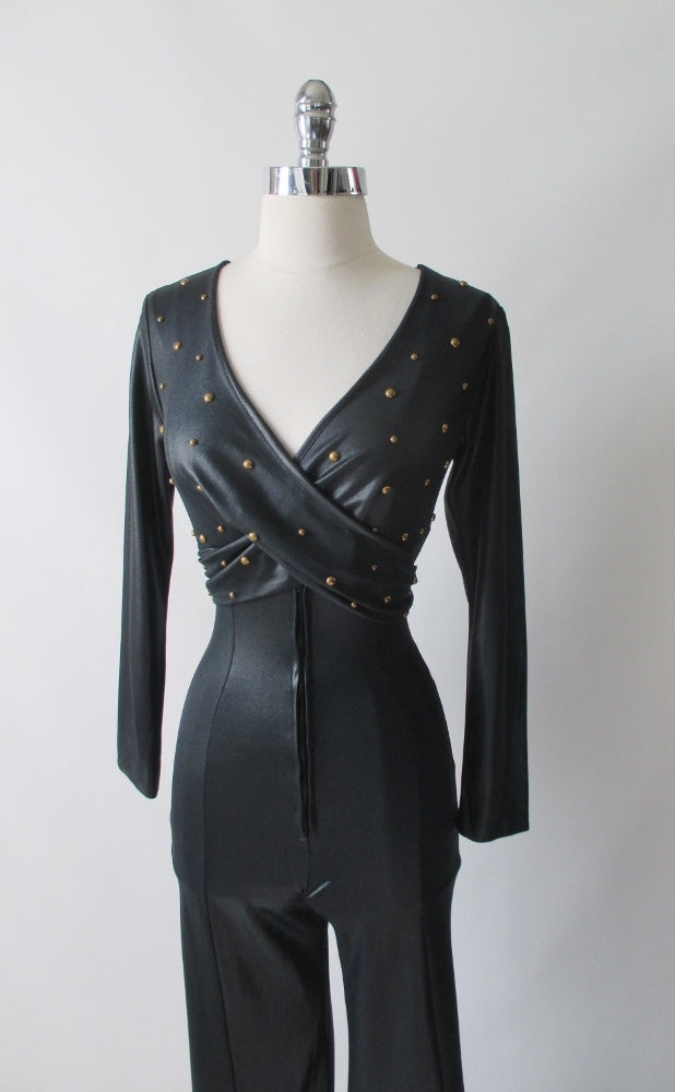 Vintage 70's Fredericks of Hollywood Liquid Satin Studded Jumpsuit Catsuit