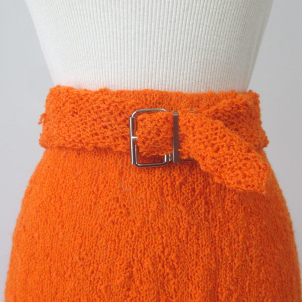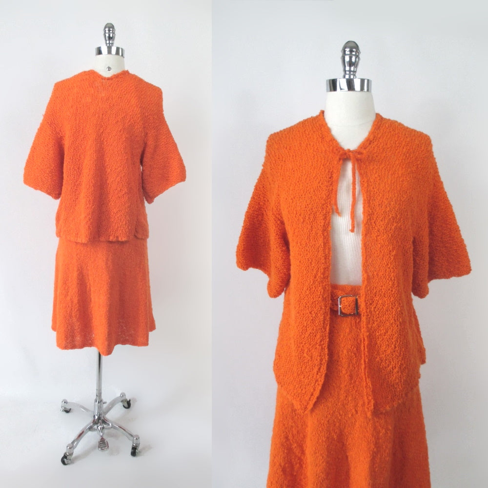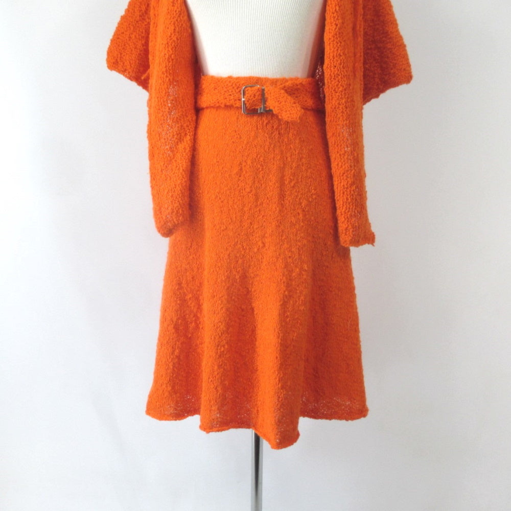 Vintage 60s 70s Orange Hand Kit Jacket + Skirt + Belt Set XL