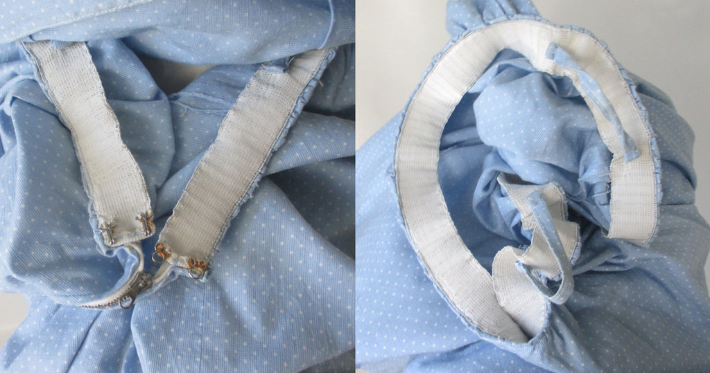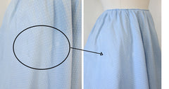 Full swing skirt with basic finished band, metal zipper and hooks with eyes.
