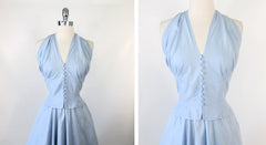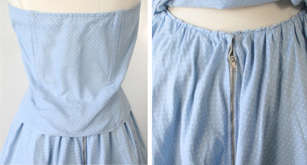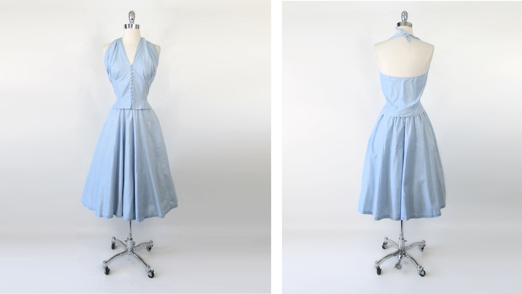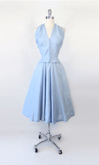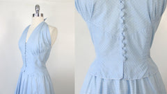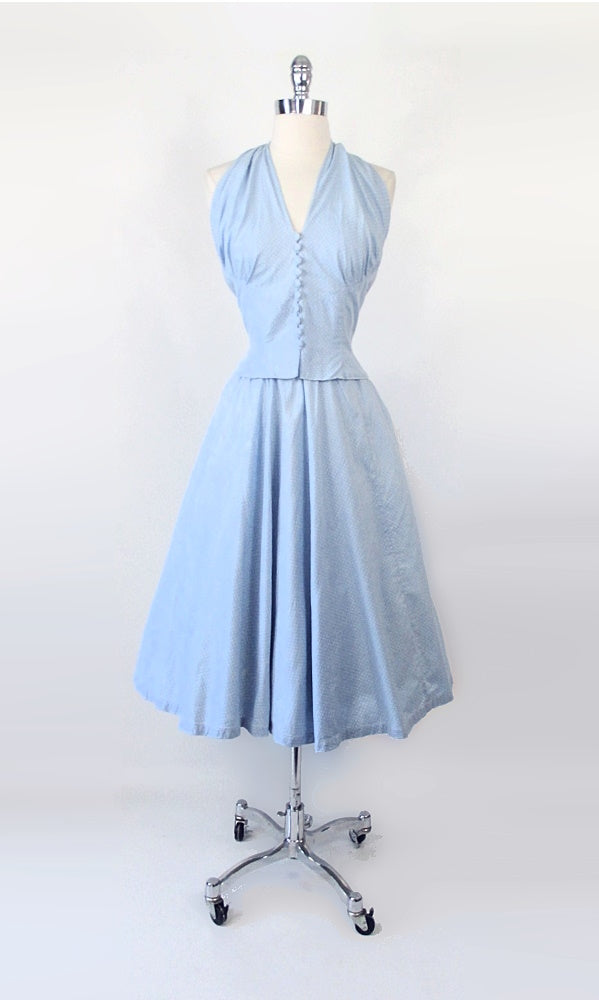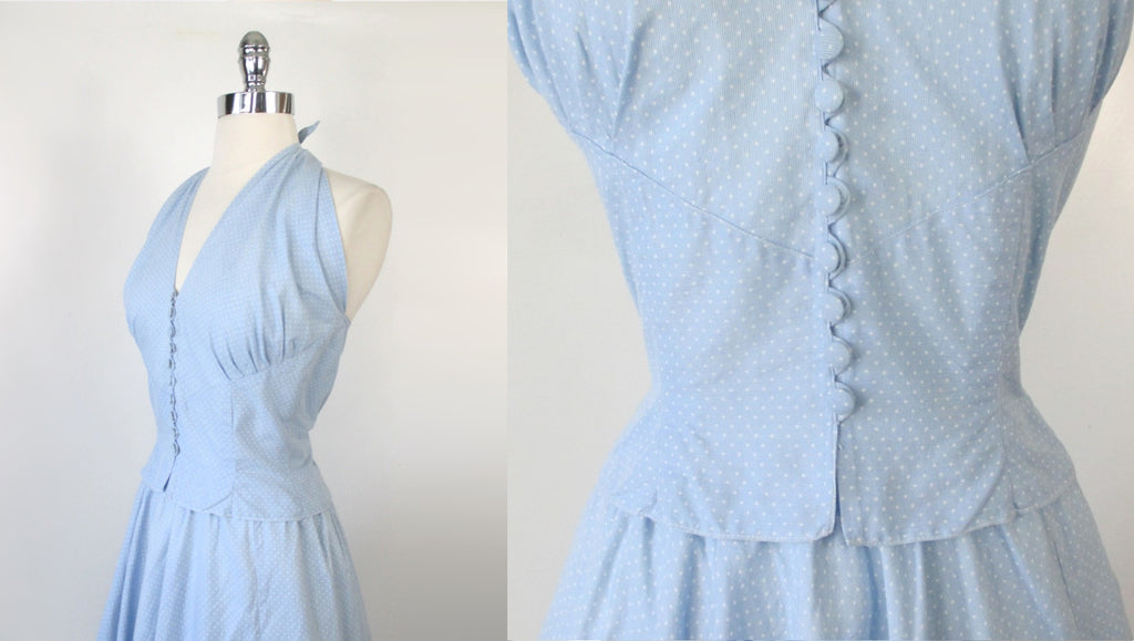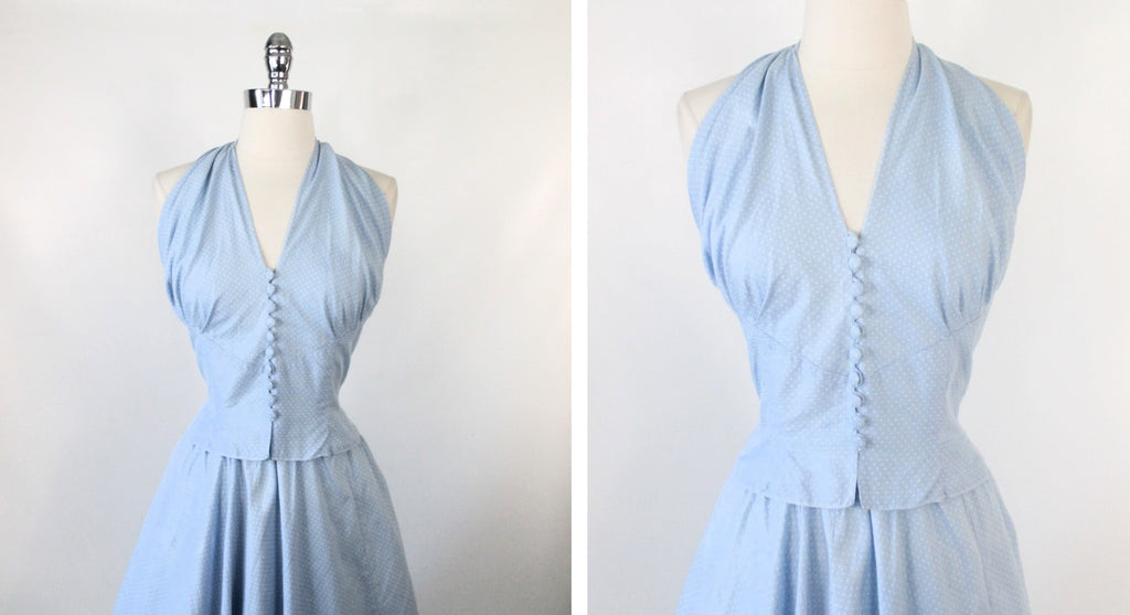 Vintage 50s Swiss Dot Halter Top Skirt Set XS