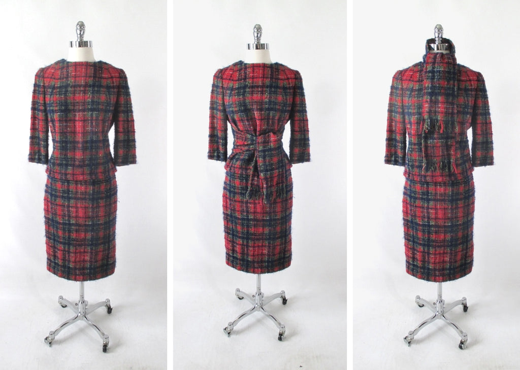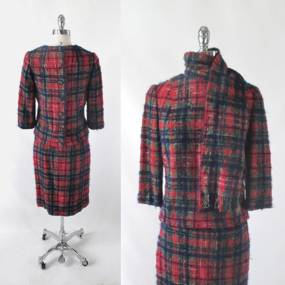 Vintage 60s Joseph Magnin Plaid Wool 3 Piece Suit S