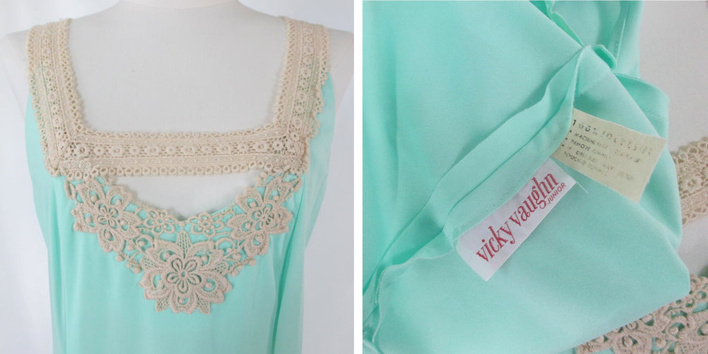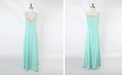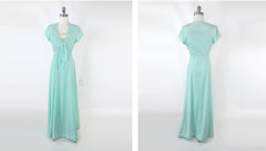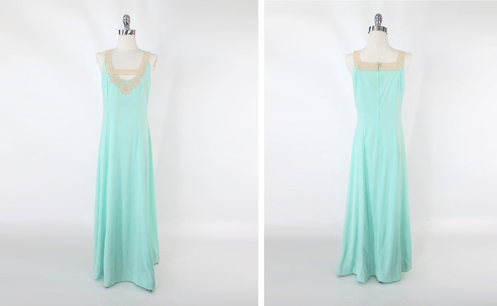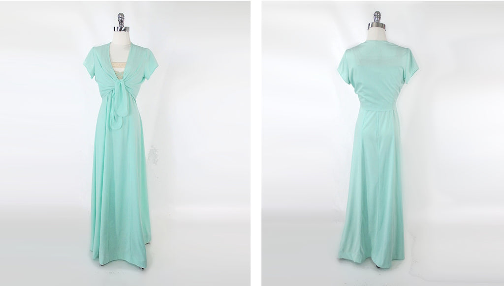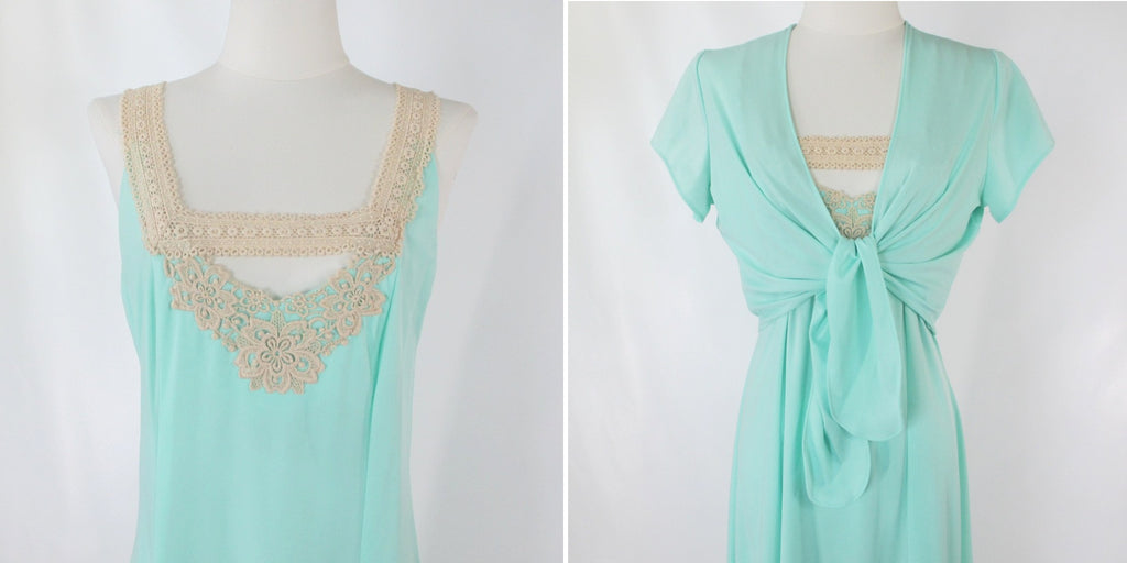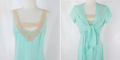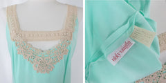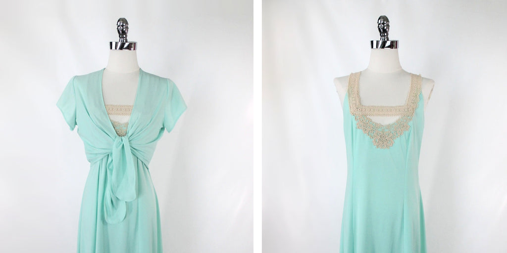 Vintage 70s Mint Crochet Party Dress & Cropped Tie Top Set M
