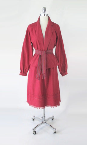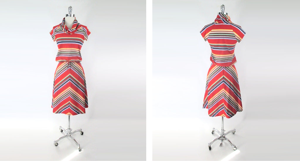 Vintage 70s Red Chevron Stripe Top & Skirt Set XS