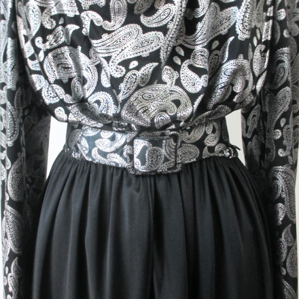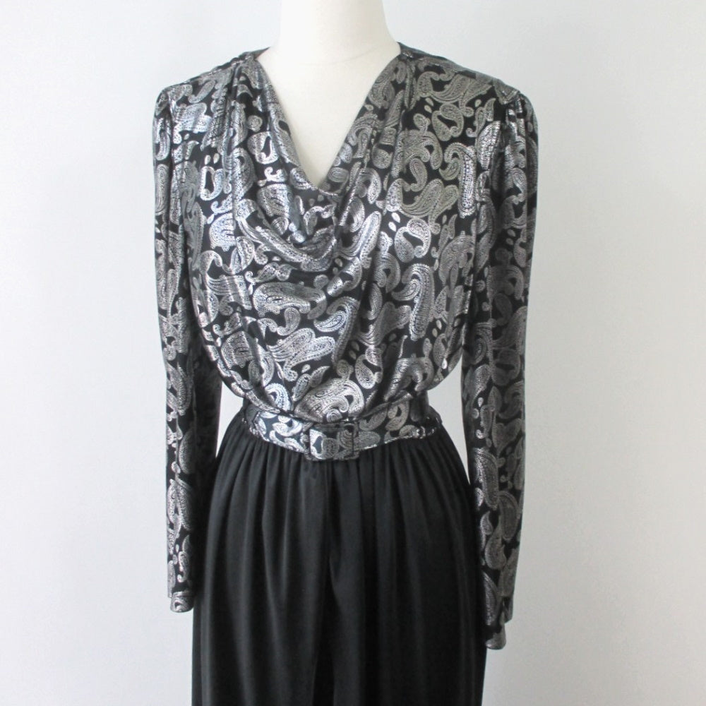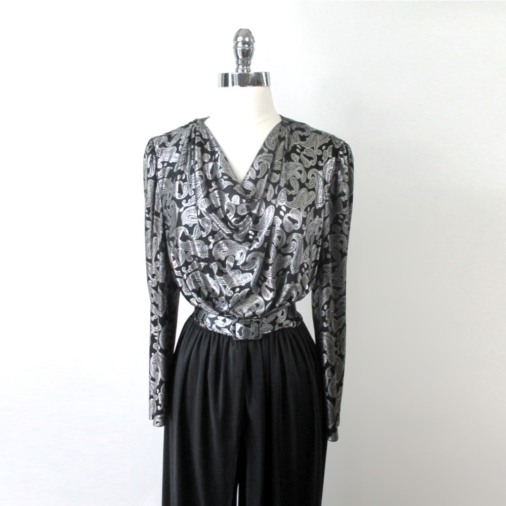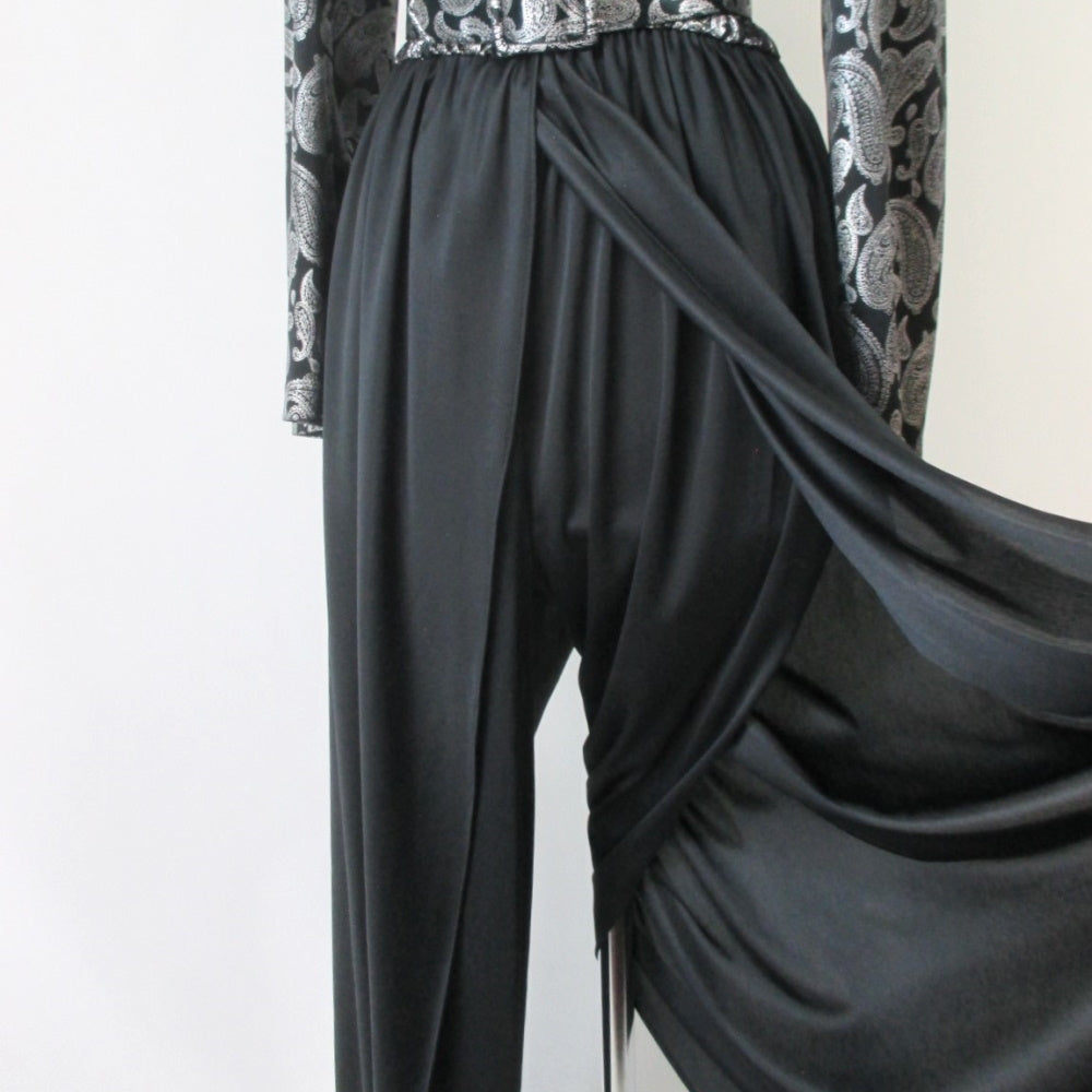 Vintage 80s Silver Paisley Harem Pants Party Jumpsuit L