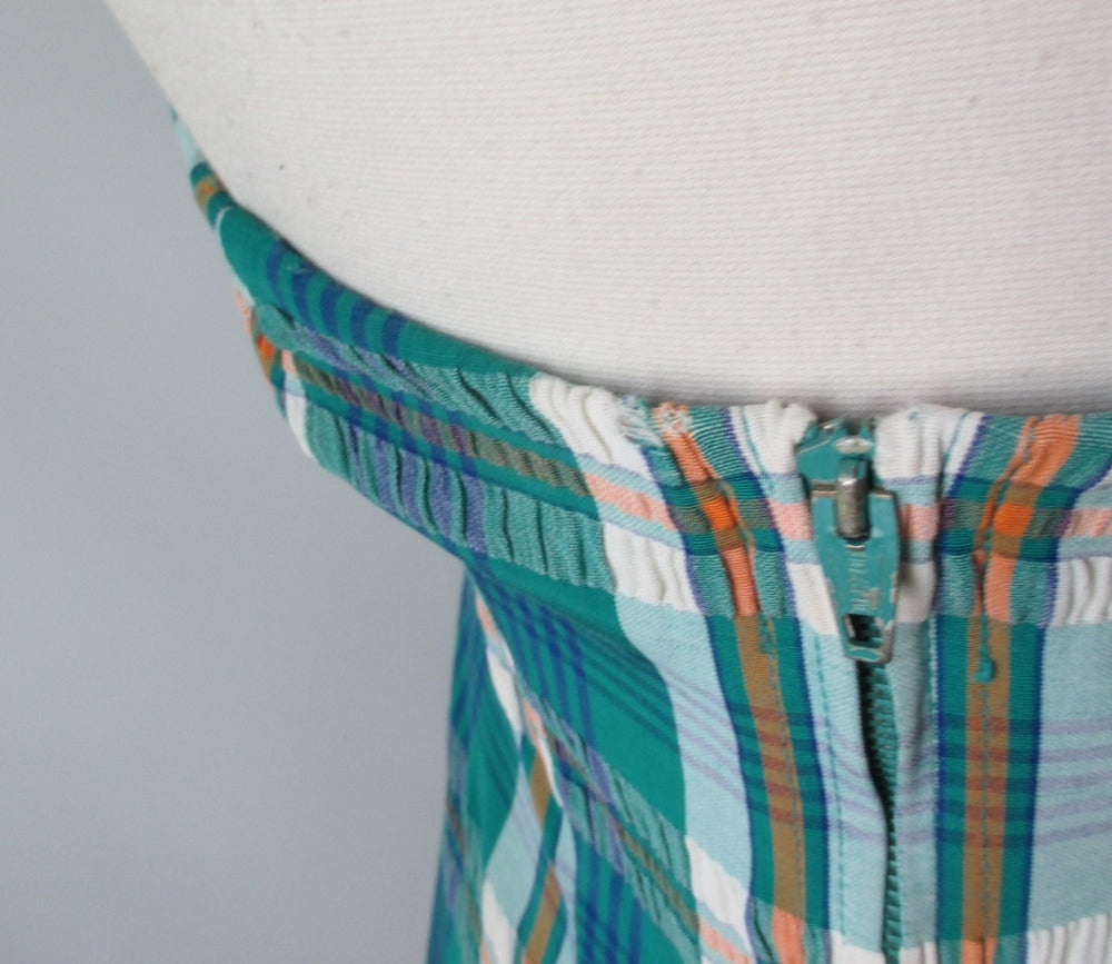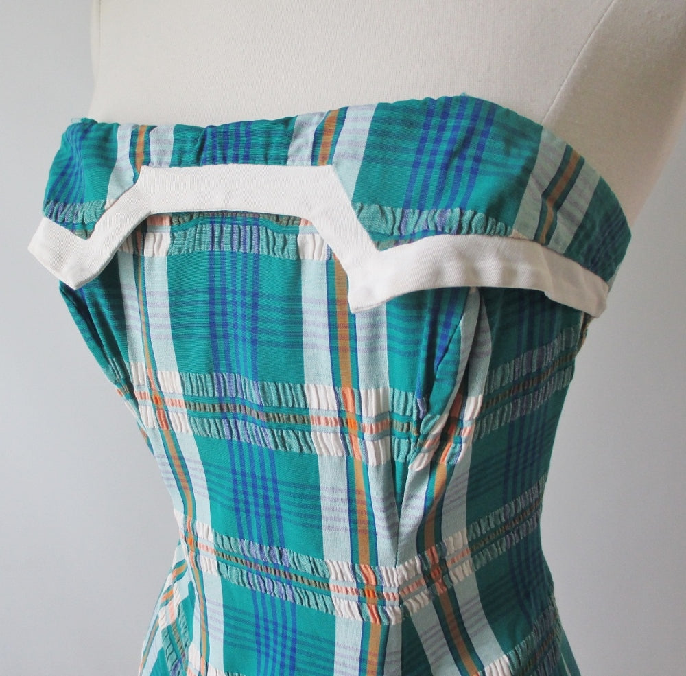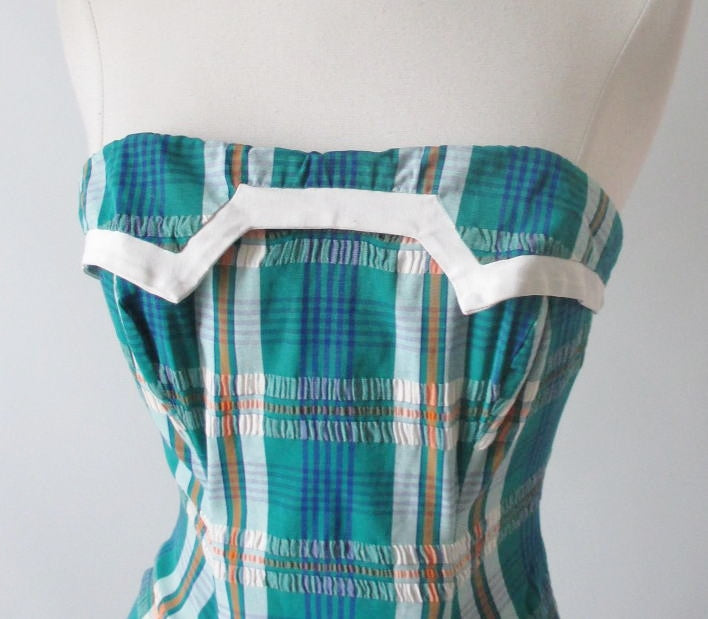 Vintage 50's Rose Marie Ried Turquoise Plaid One Piece Swimsut S