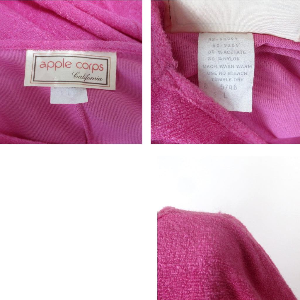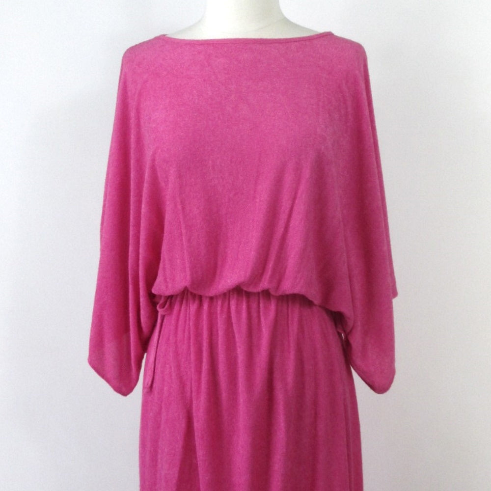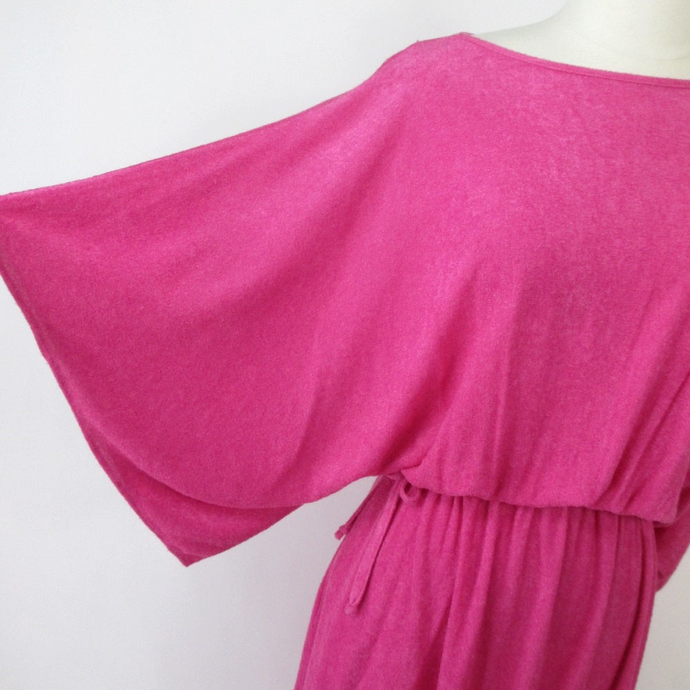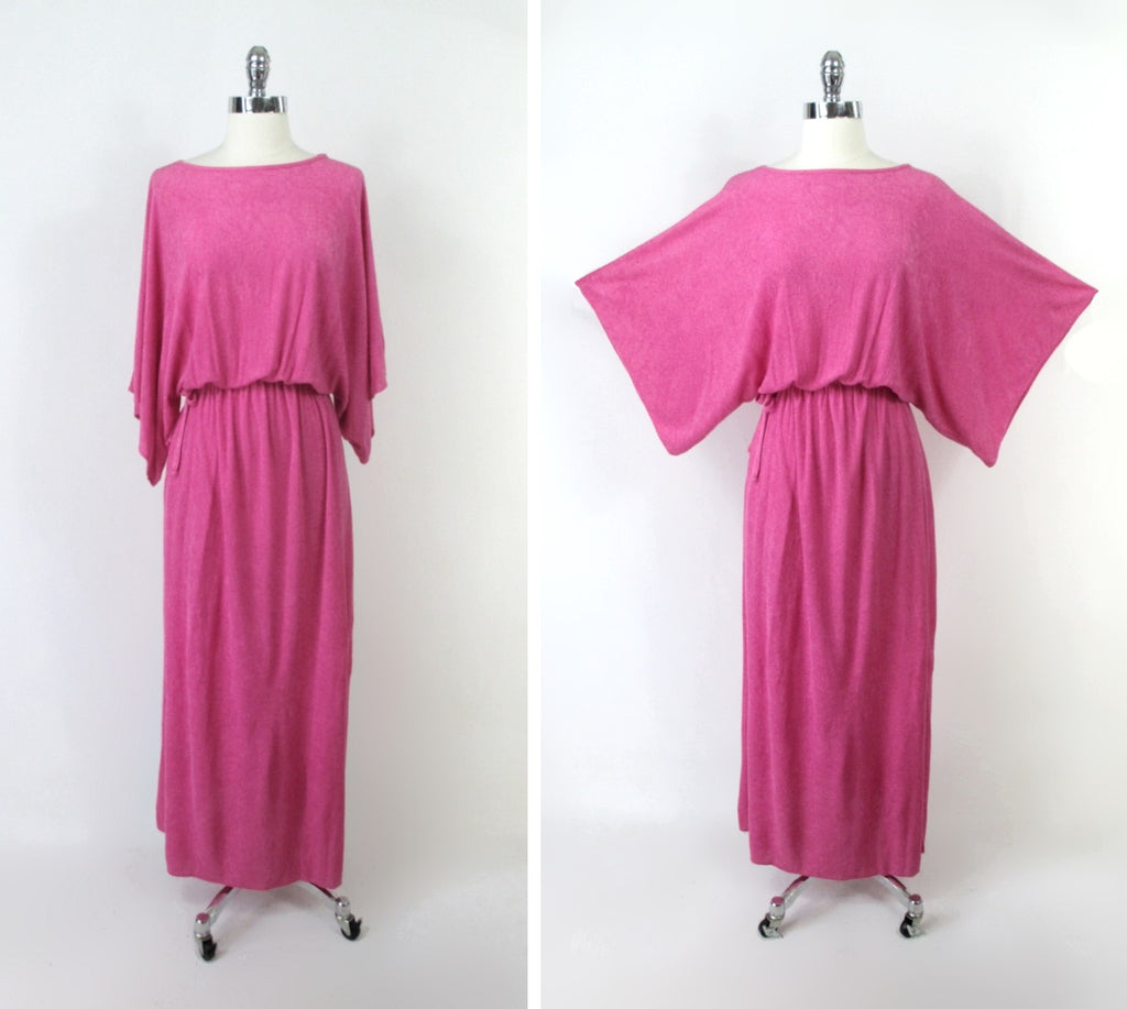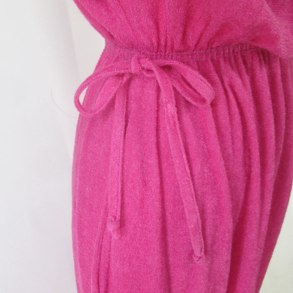 Vintage 70s Hot Pink Terry Cloth Grecian Maxi Dress / Cover Up L