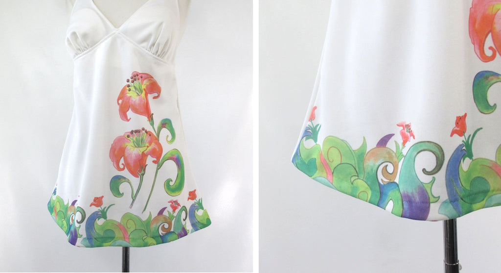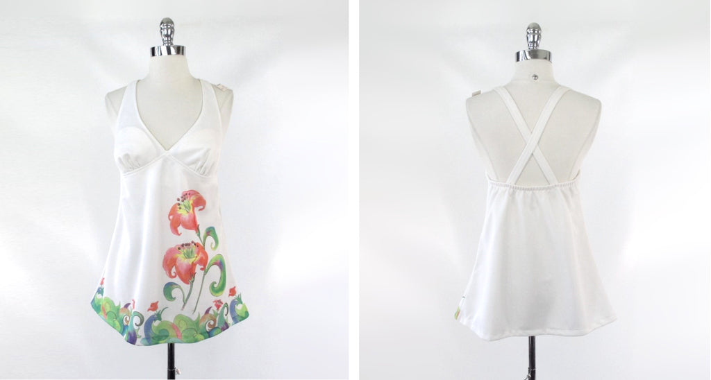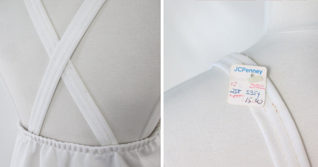 Vintage 70s White Skirted Swimsuit Halter Top M