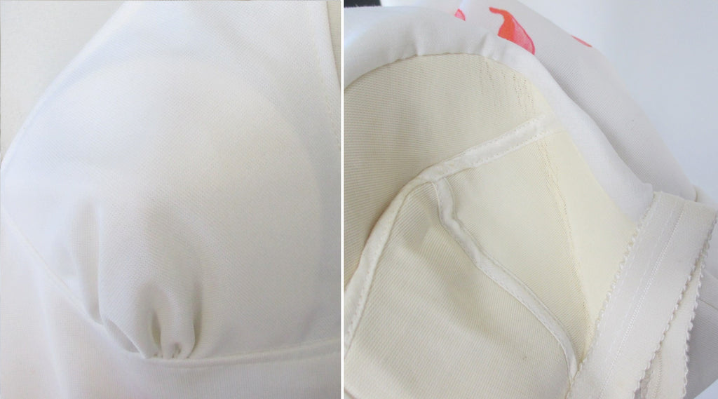 Blue freckle on the bodice + One of the cups has been folded when stored.