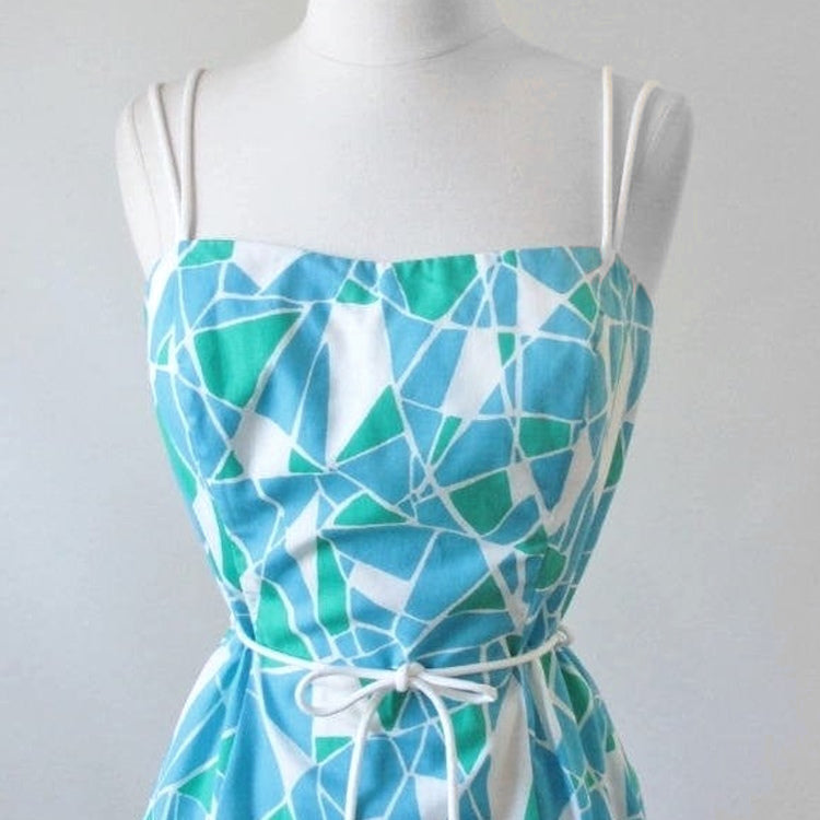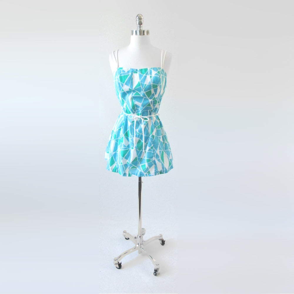 Vintage 80's Geometric Mini Dress Beach Cover Up L