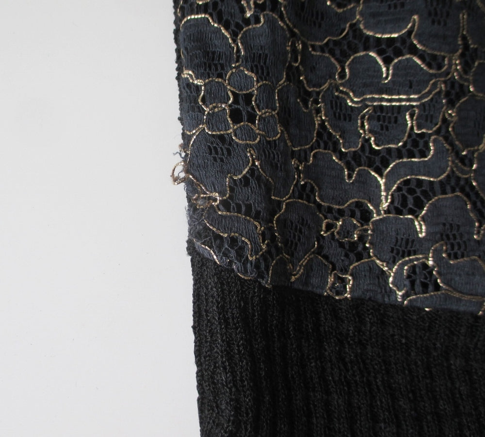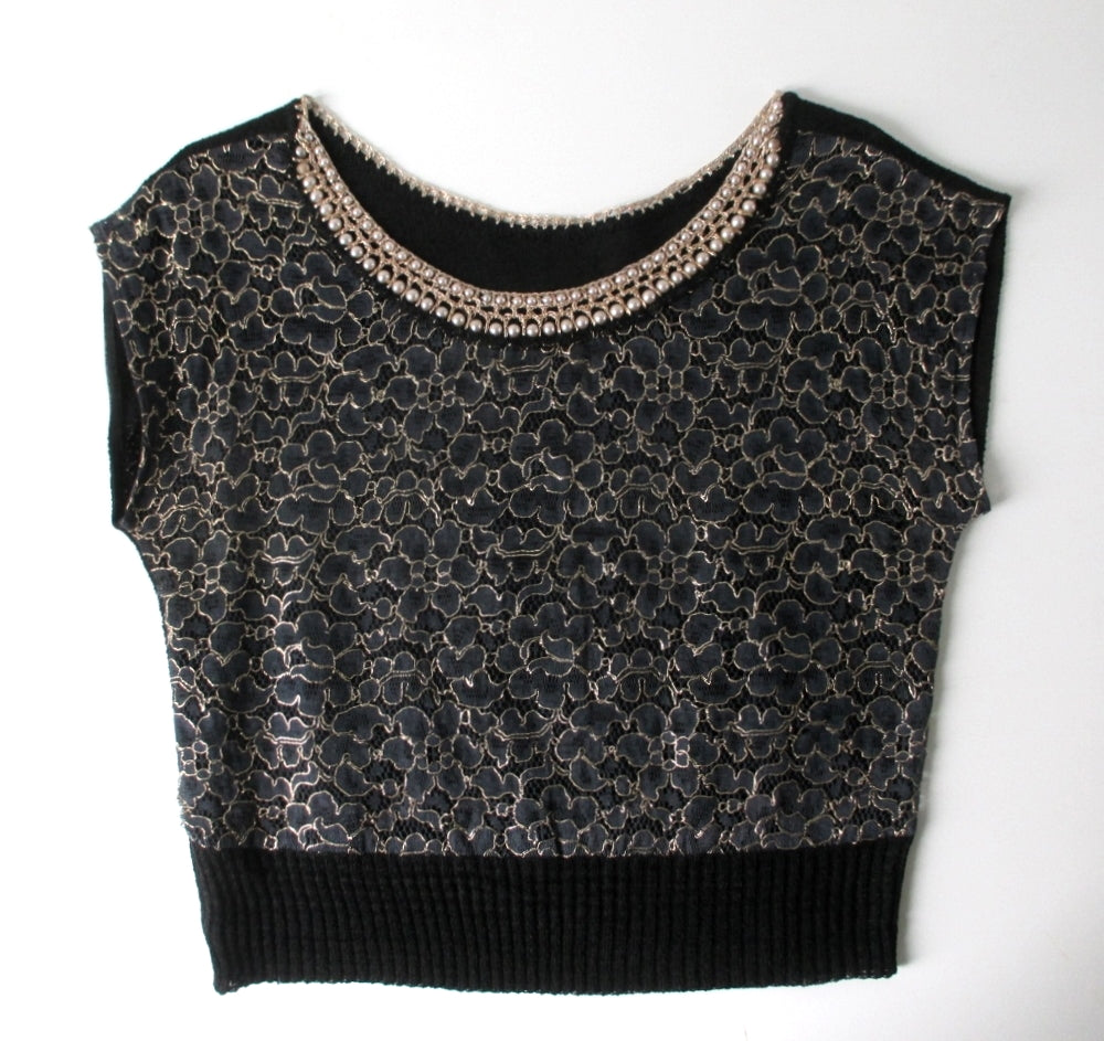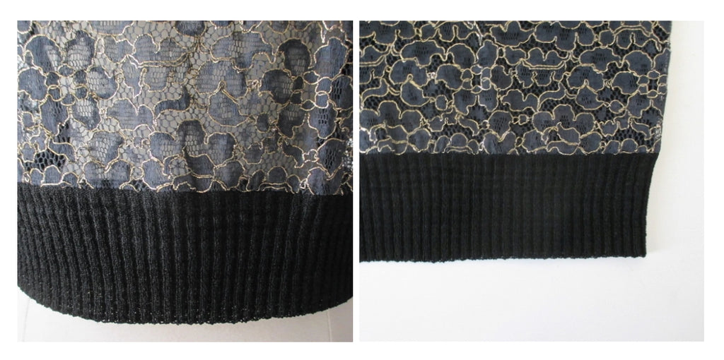 Vintage 50's Pearl Collar Black Lace Knit Sweater Top L