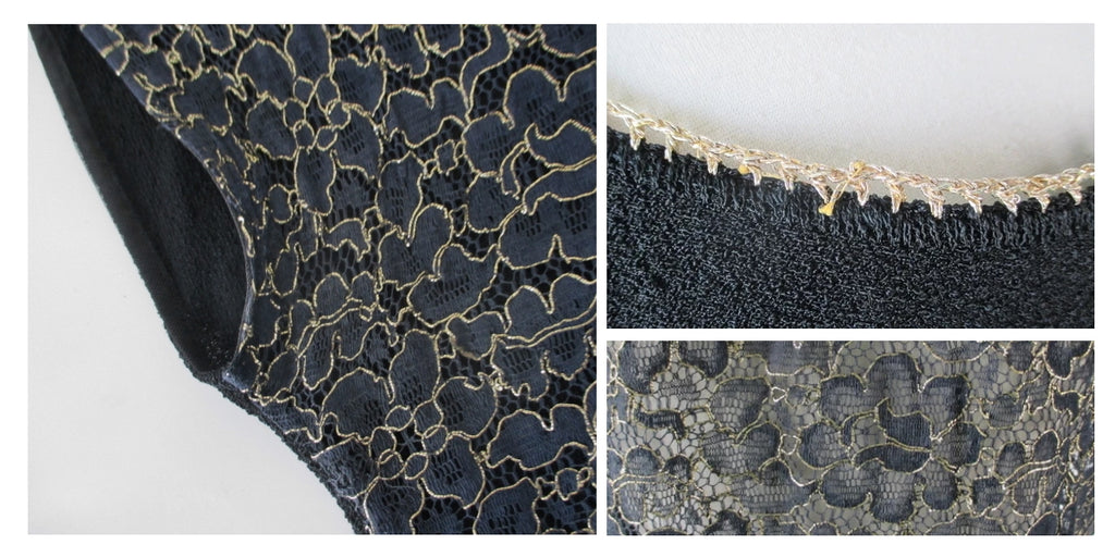 Black and gold edged lace create the sheer front.