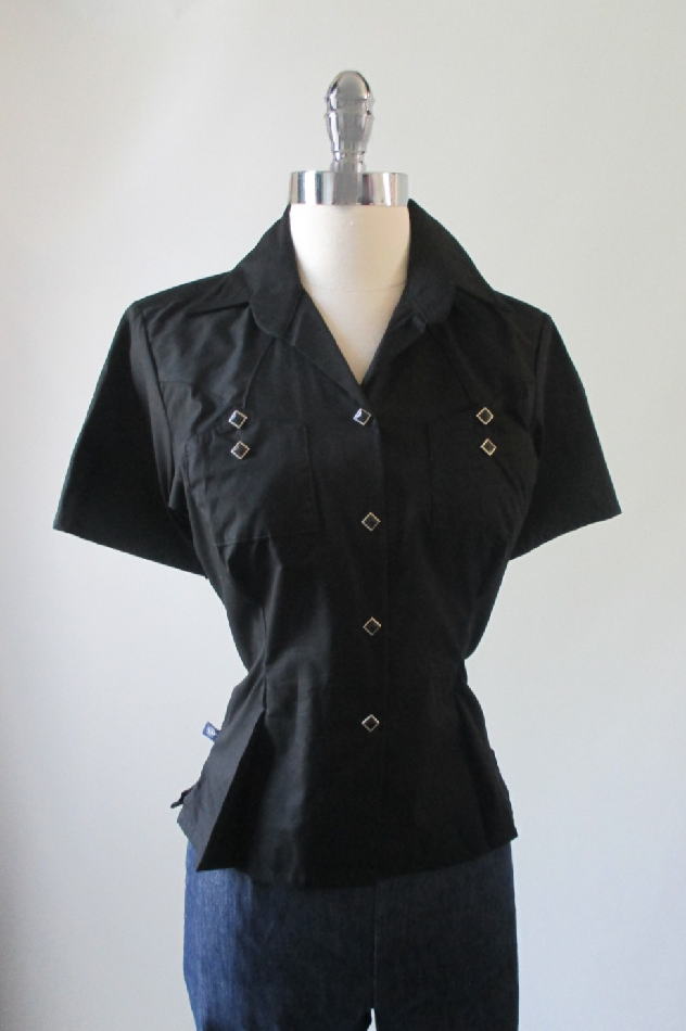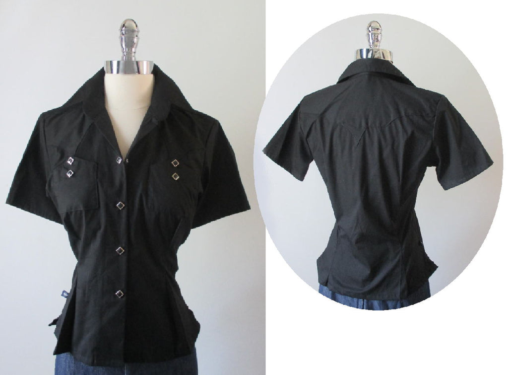 Vintage 50's Style Rockmount Ranchwear Black Western Shirt Blouse Top S