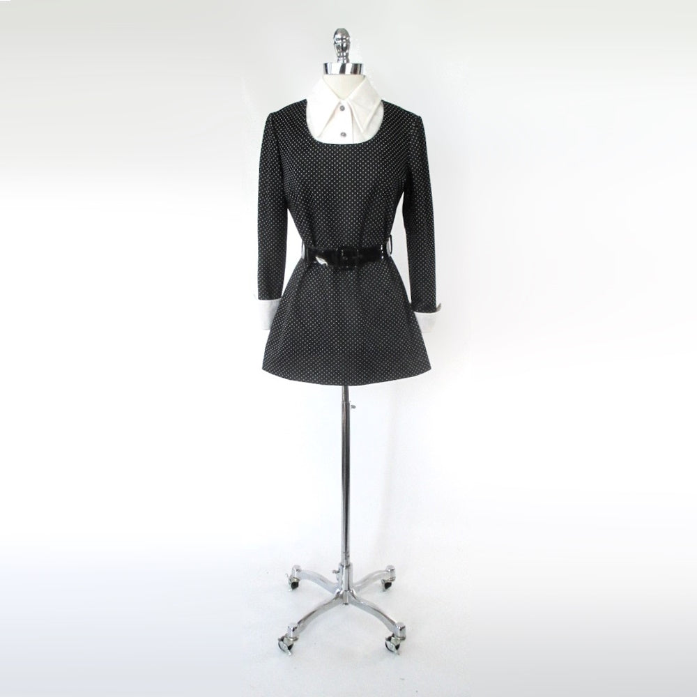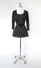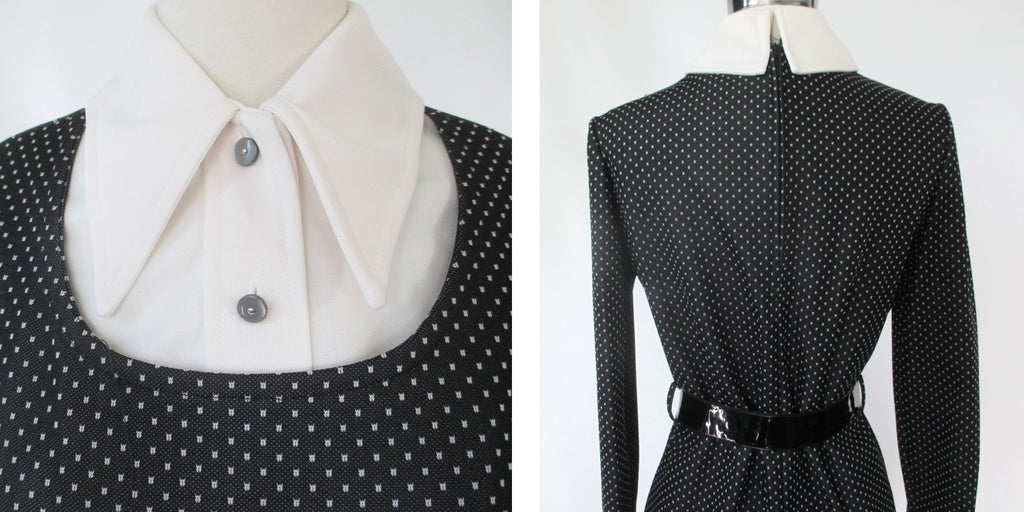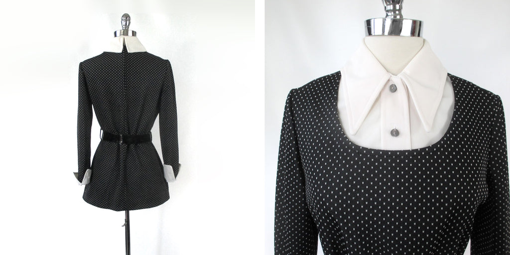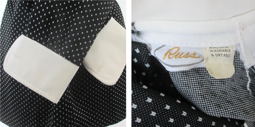 Black top with rounded neckline and a white pattern that looks like polka dots.